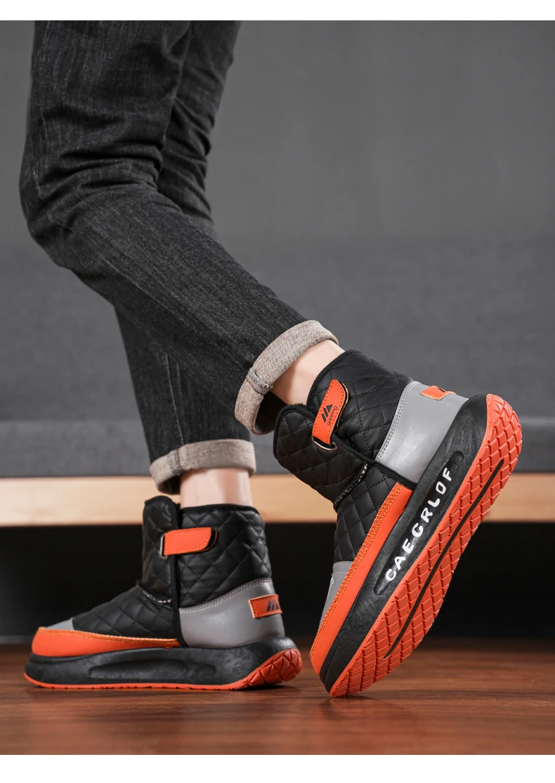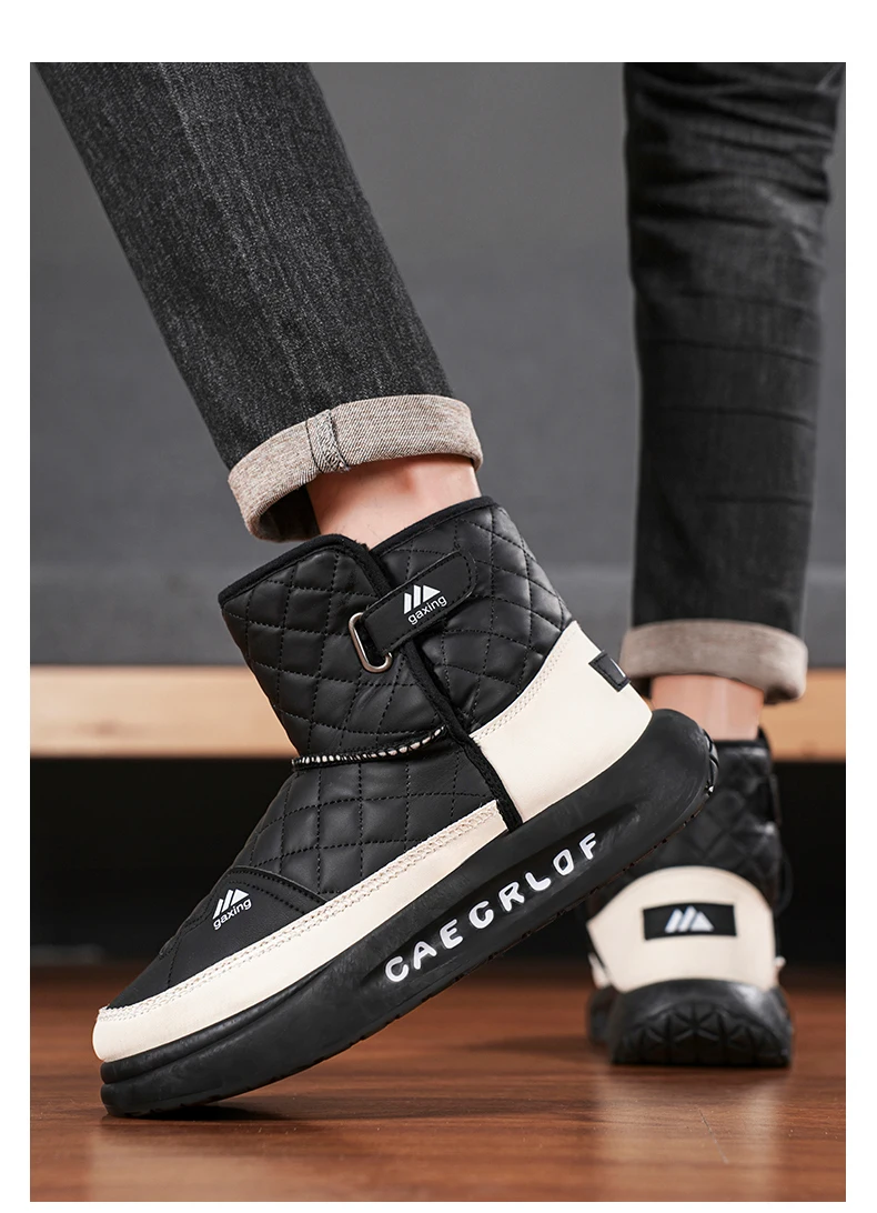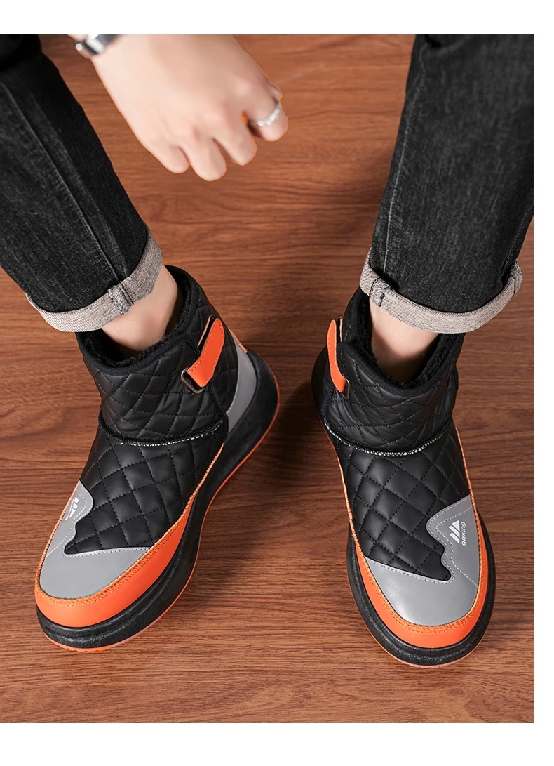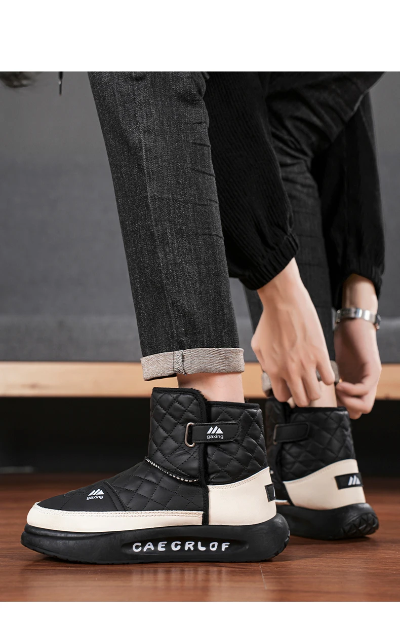 Trendy Men Snow Boots Keep Warm Cotton Boots 2024 New Leather Water Proof High Top Mens Shoes Comfort