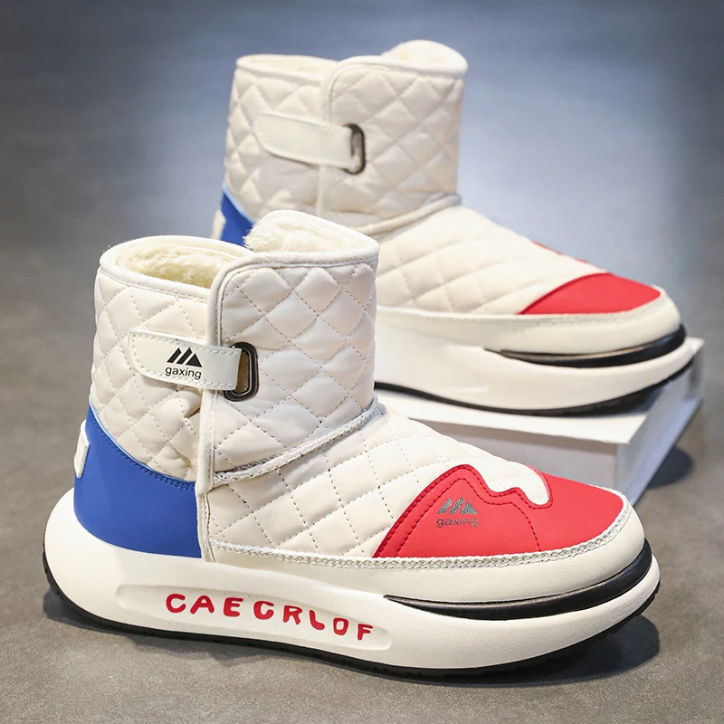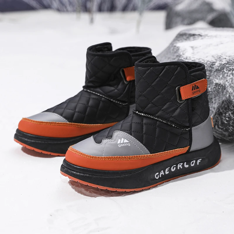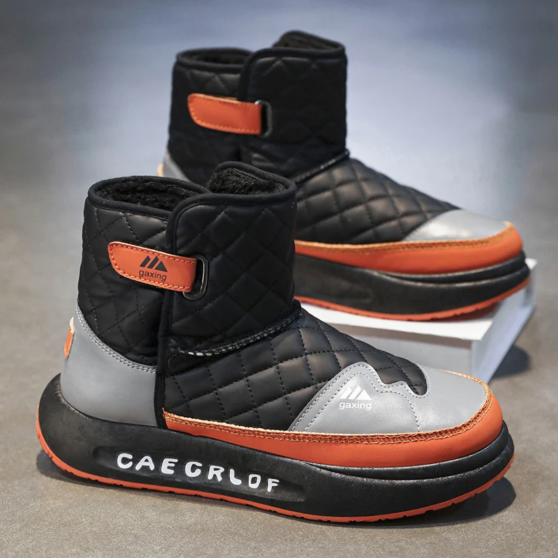Trendy Men Snow Boots Keep Warm Cotton Boots 2024 New Leather Water Proof High Top Mens Shoes Comfort