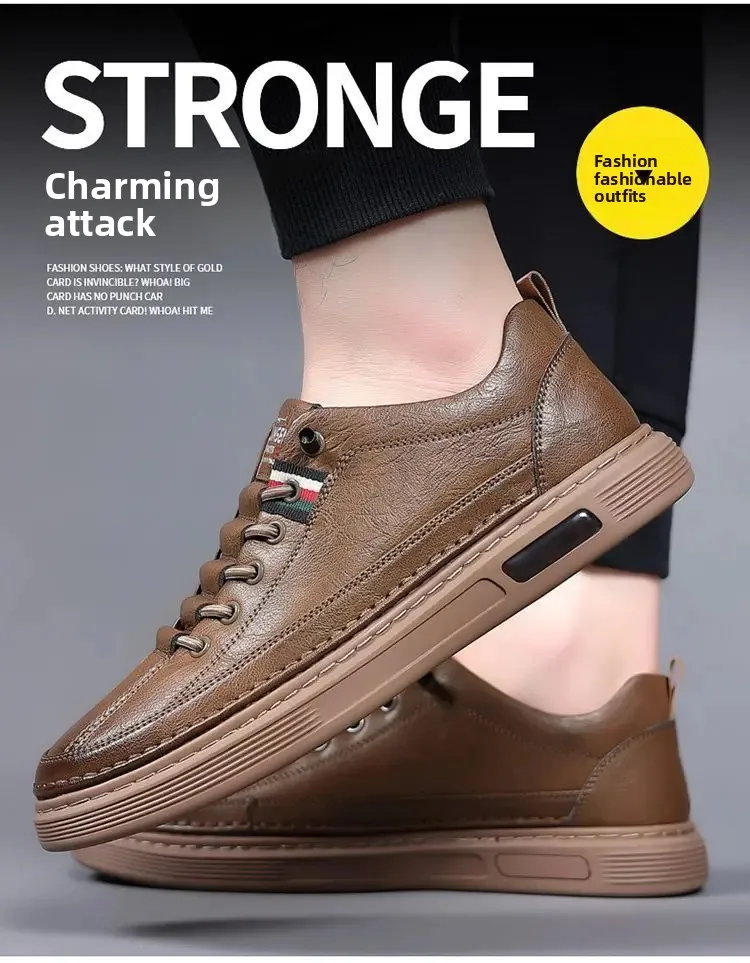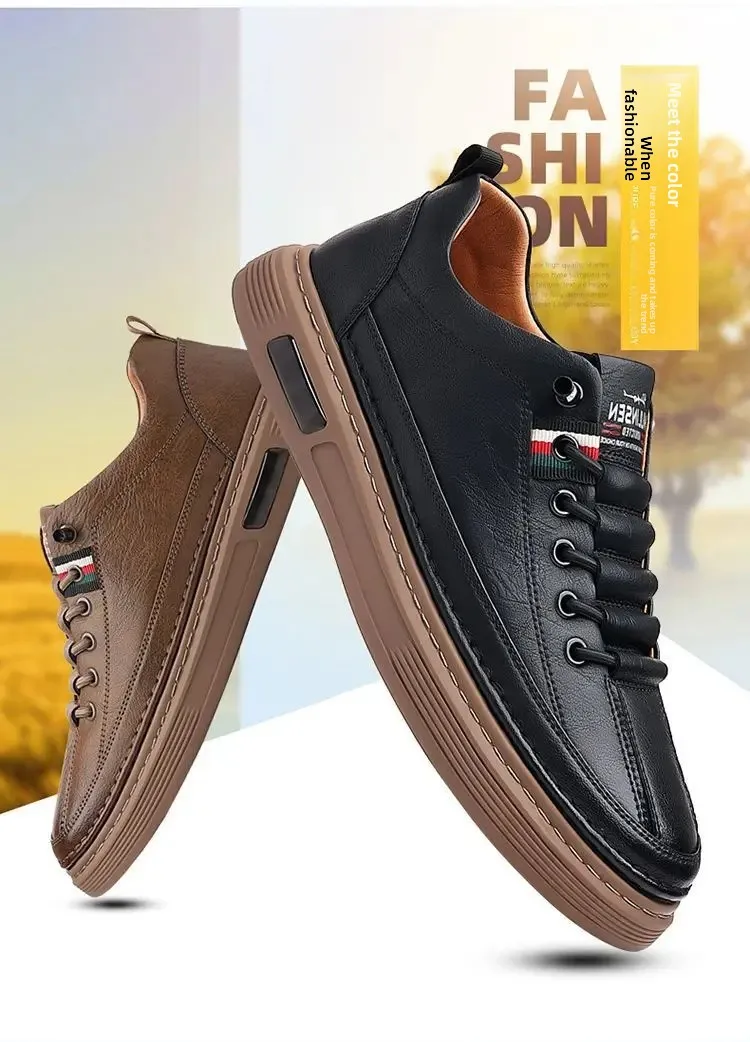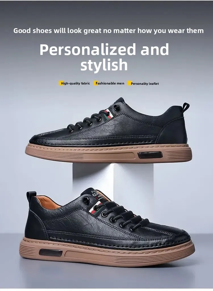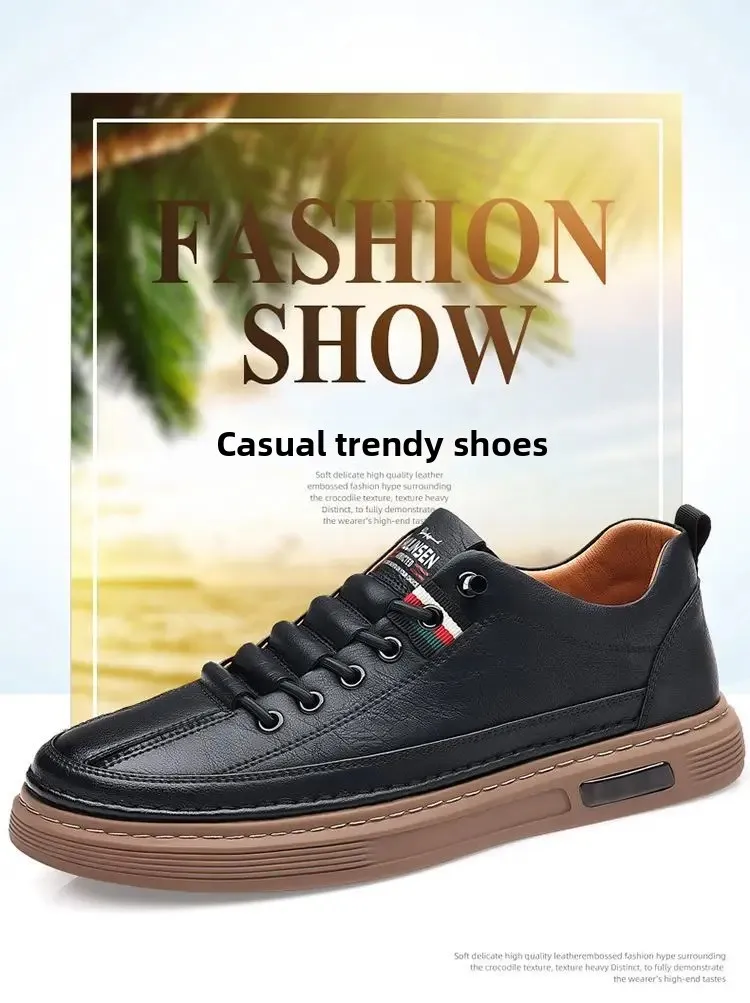 Trendy Men's Shoes Comfortable Breathable Wear-Resistant Casual Loafers Fashionable Formal Low-Top Polyurethane Leather