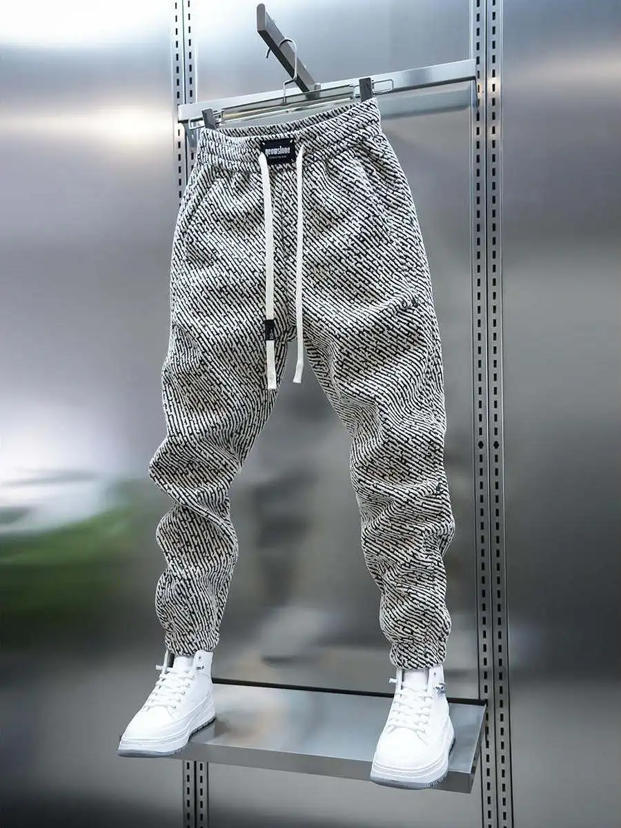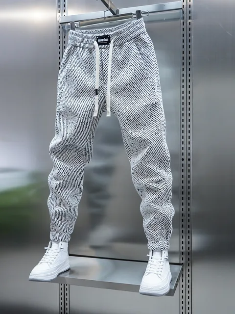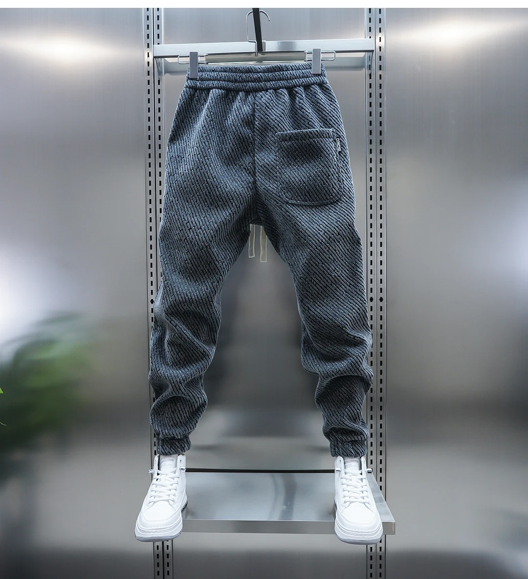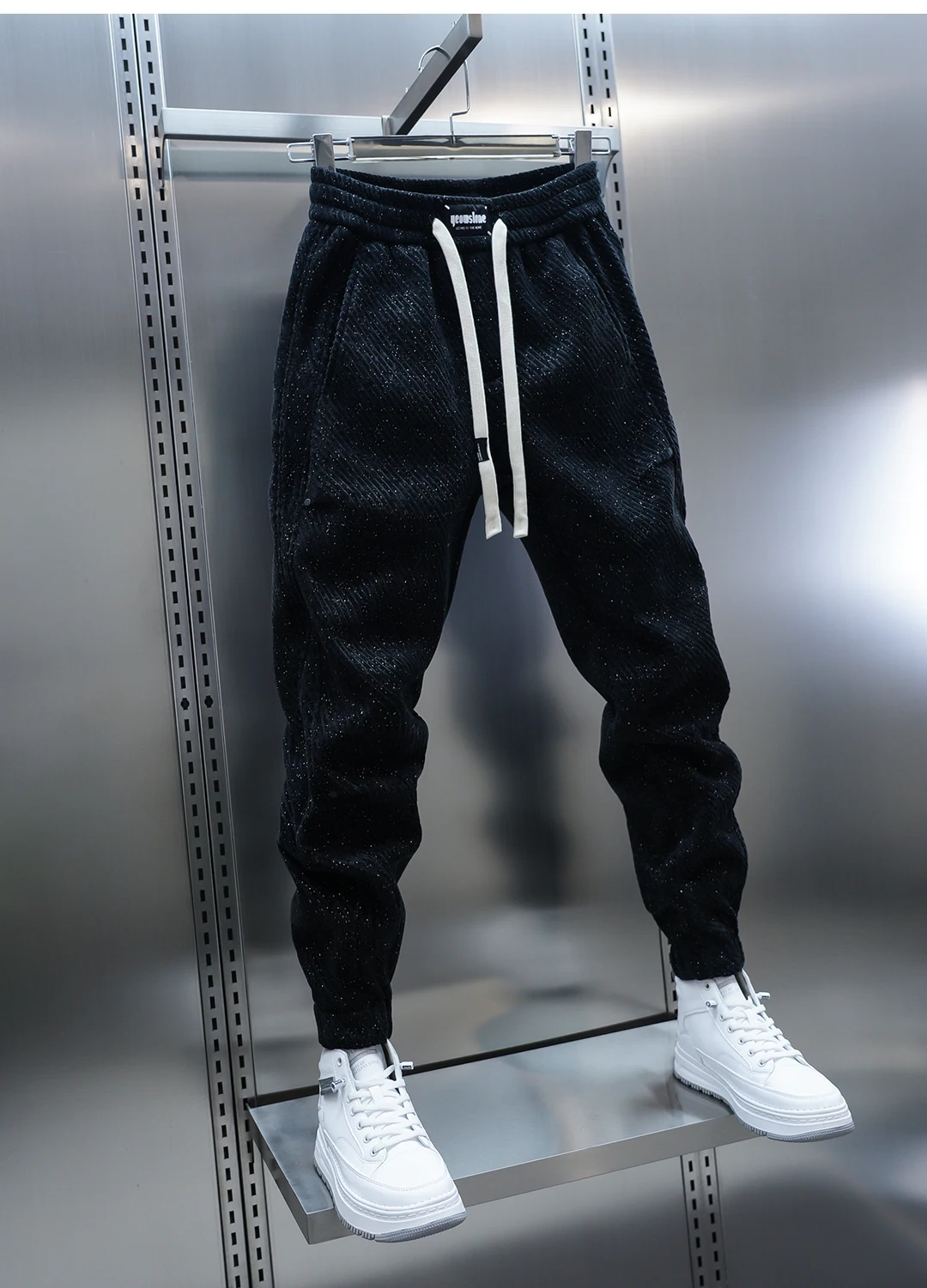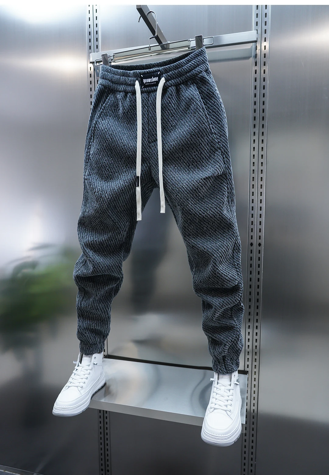 Trendy Men’s Thiened Elastic Waist Casual Pants Spring Autumn Loose Fit Sports Sweatpants Casual