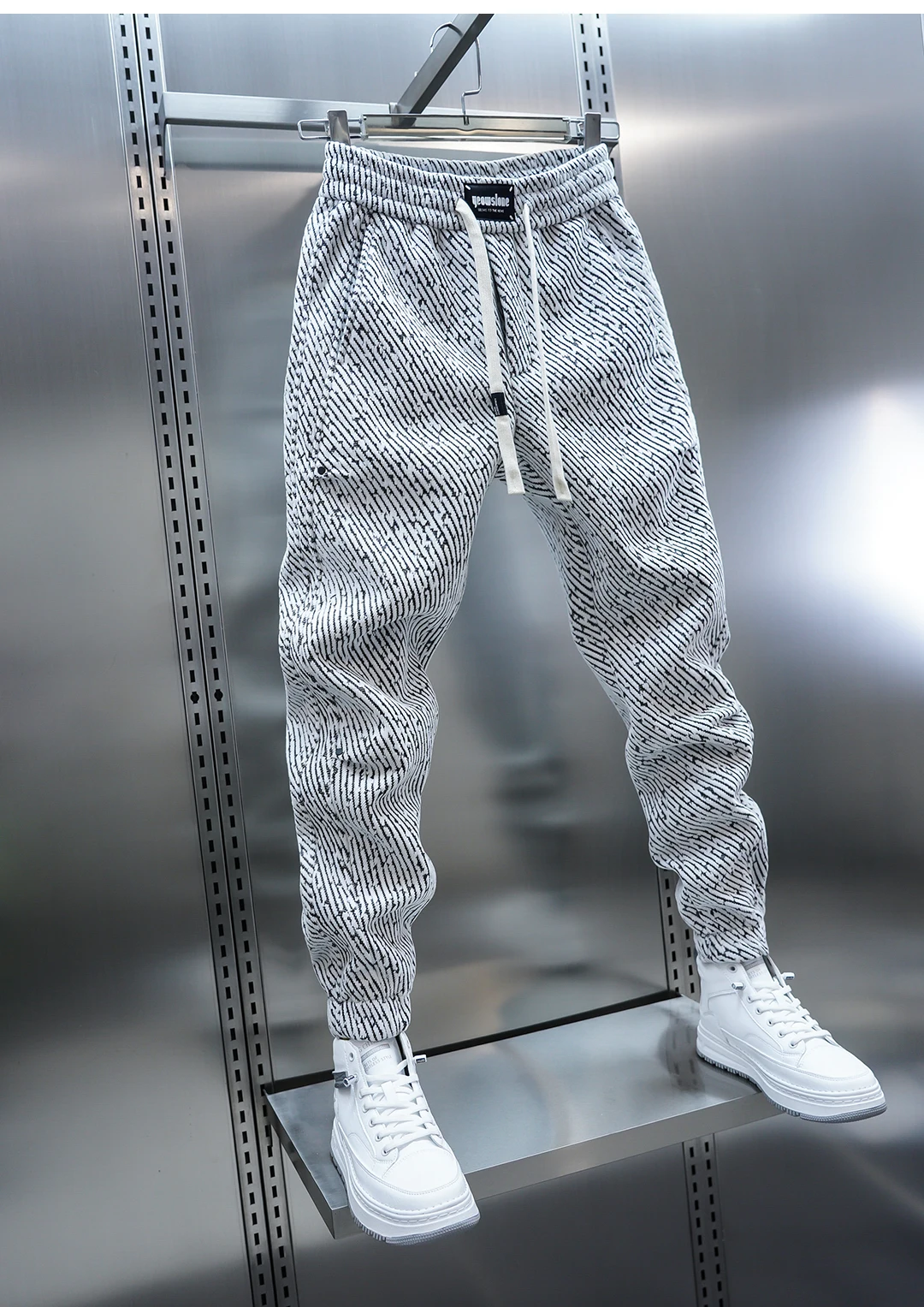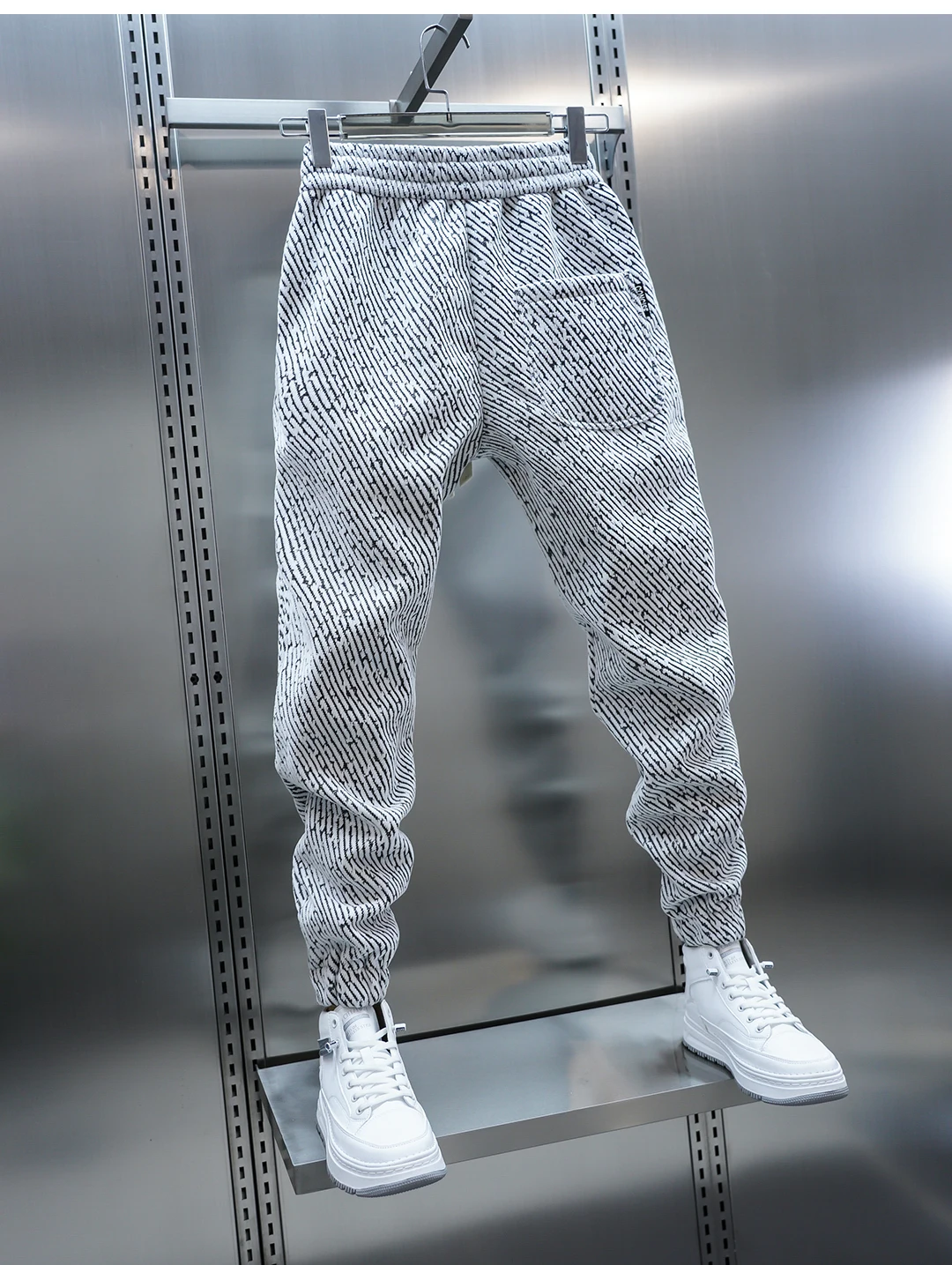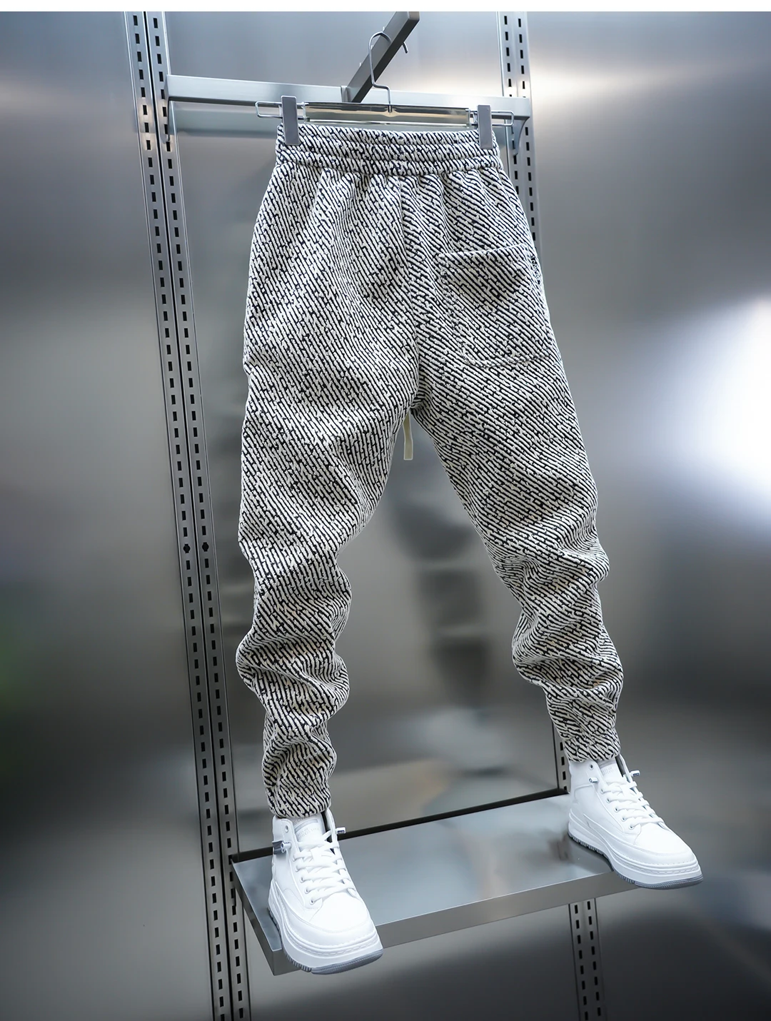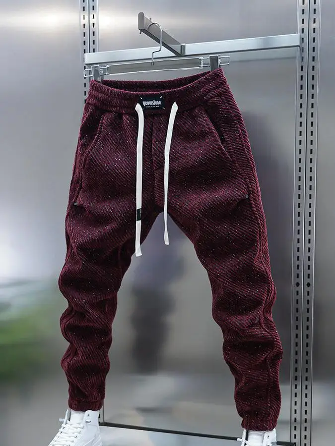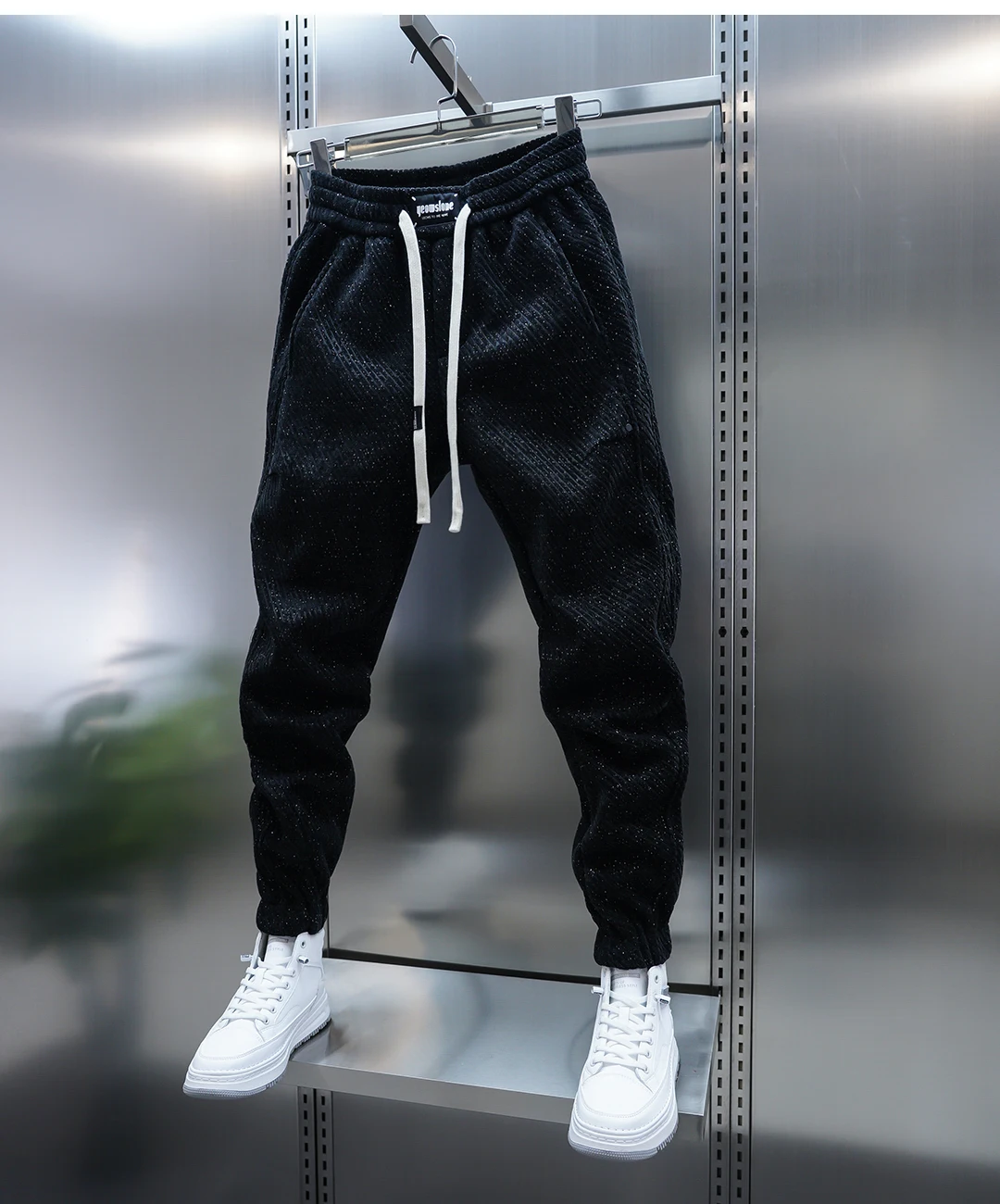 Trendy Men’s Thiened Elastic Waist Casual Pants Spring Autumn Loose Fit Sports Sweatpants Casual