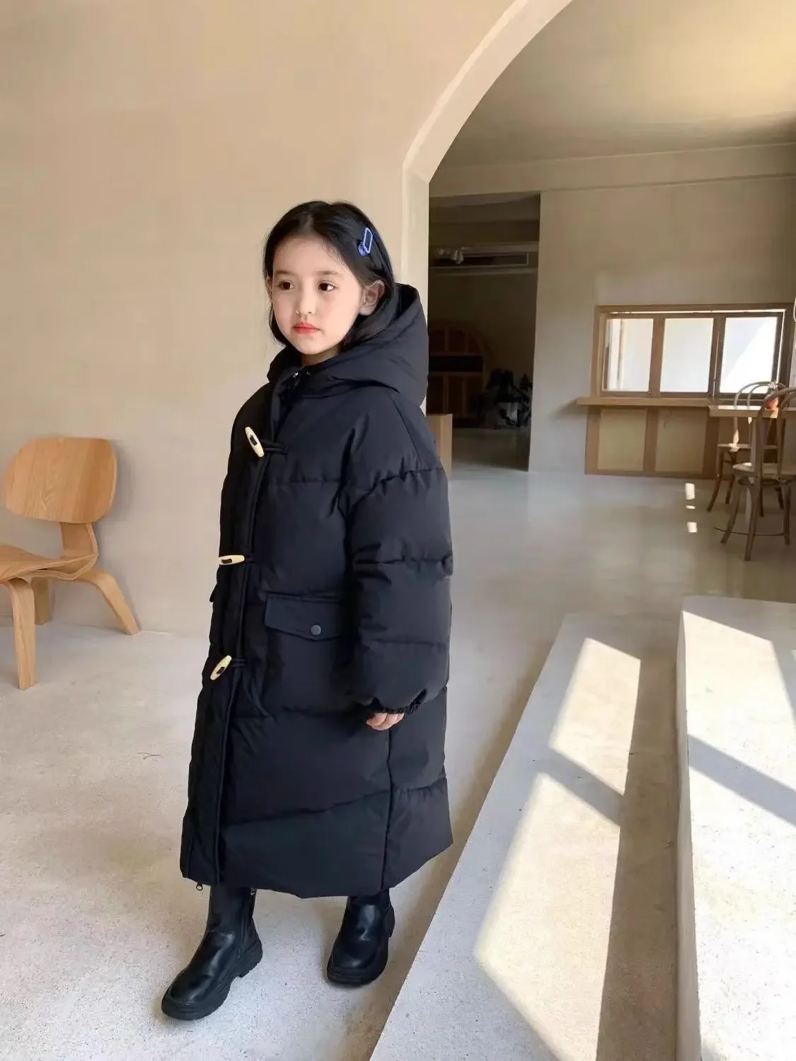 • Stylish Mid-length Design : The coat features a stylish mid-length design, perfect for keeping your little one warm and fashionable during the winter months.