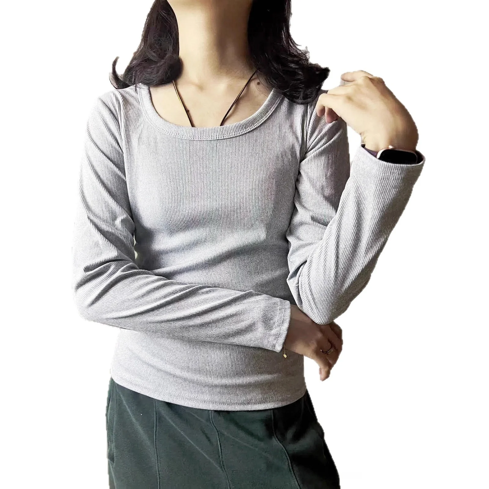 Designed for both office and casual settings, this top can be worn as an outer layer or undergarment, showcasing its versatility.