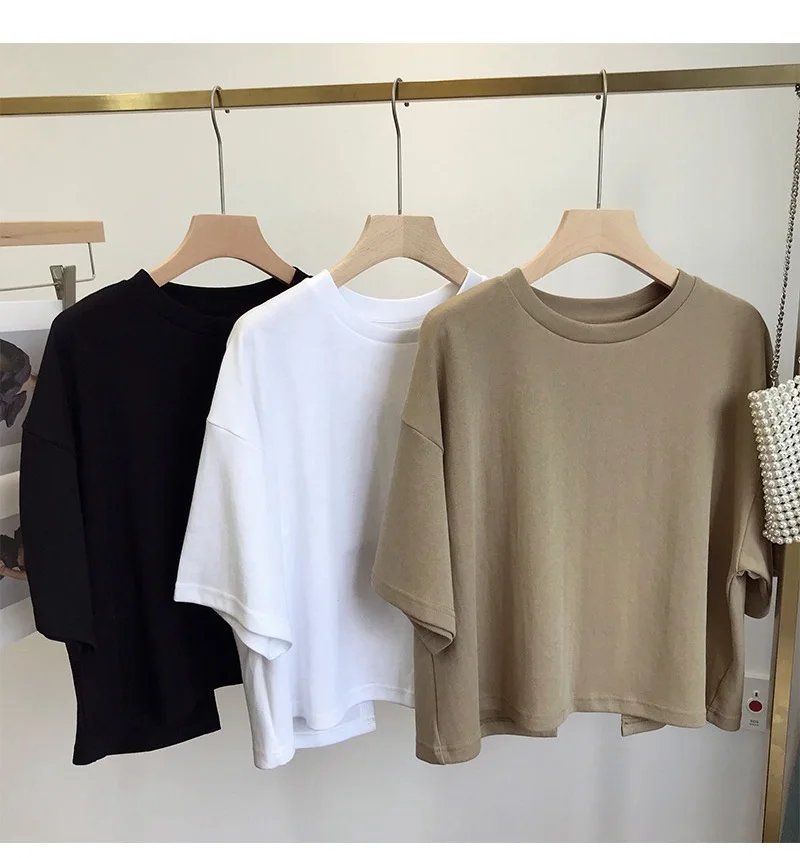 Loose Short Sleeve Crew Neck T-Shirt Women's Summer Fashion Plant Print Casual Solid Color Student Half Sleeve Top Trendy