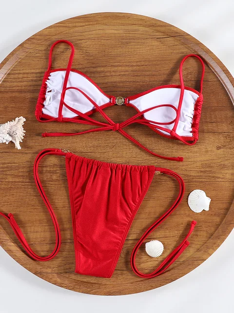 Triangle Red Bikini Sets Swimwear Women String Swimsuit Sexy Bathing Suit Summer 2-Piece Biquini 2025