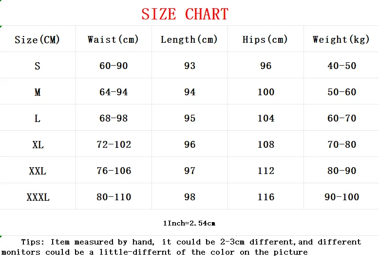 | size_info | {"sizeInfoList":[{"length":{"cm":"60-90","inch":"23.62-35.43"},"size":"S","vid":100014064},{"length":{"cm":"64-94","inch":"25.20-37.01"},"size":"M","vid":361386},{"length":{"cm":"68-98","inch":"26.77-38.58"},"size":"L","vid":361385},{"length":{"cm":"72-102","inch":"28.35-40.16"},"size":"XL","vid":100014065},{"length":{"cm":"76-106","inch":"29.92-41.73"},"size":"XXL","vid":4182},{"length":{"cm":"80-110","inch":"31.50-43.31"},"size":"XXXL","vid":4183}]} |