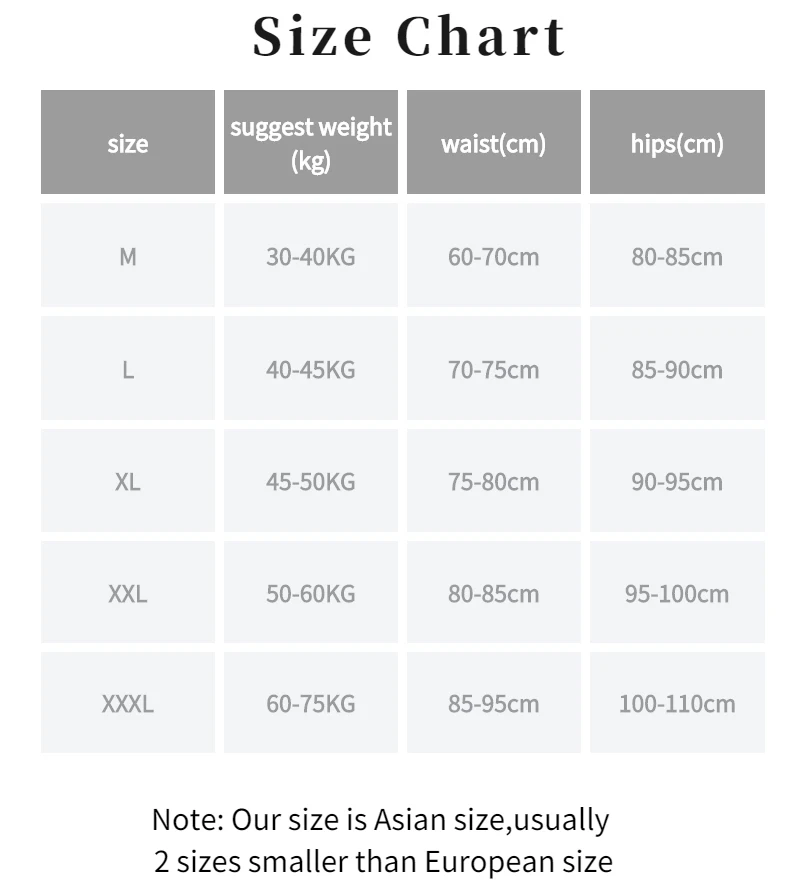 The size is smaller 1-3 size than EU/US/UK size, please check the detail size information before purchasing.Size measured by ourselves,sometimes has some errors, but always within 1-3cm.We recommend choosing the RIGHT SIZE according to the WEIGHT. If you cannot choose, you can contact us to serve you.