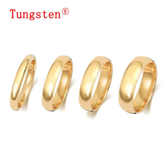 • This classic men’s gold tungsten wedding band is stunning. This is available in 8MM,6MM,4MM,and 2MM widths. With our comfort fit inner shape this not only looks great but it also feels great on the finger. Our Tungsten Carbide rings are extremely durable and are 10 times stronger than gold. That’s one reason our customers love this ring. This means it will not tarnish, scratch and it will maintain its beauty and shape forever. Our rings are made to last forever! This is symbolic of your relationship. This ring is perfect for a wedding band, anniversary gift, promise ring, birthday, or a gift to that special someone.