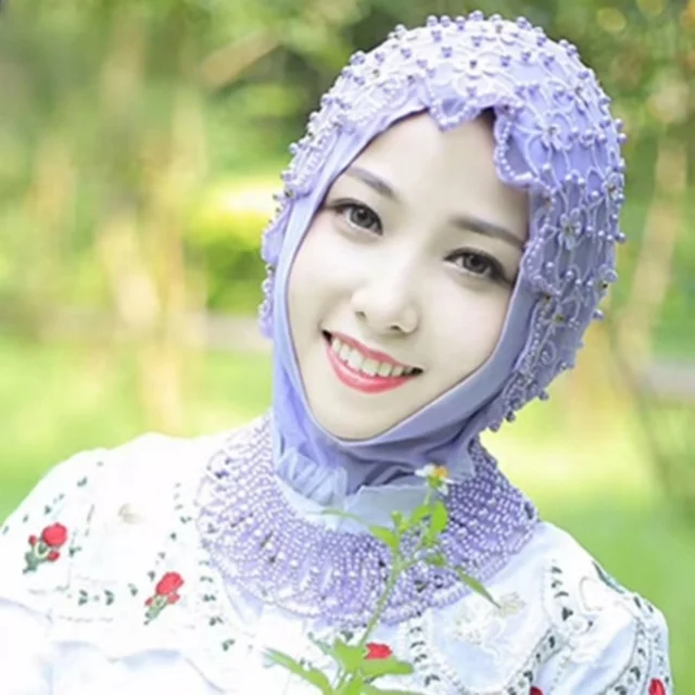 Turban Fashion Unique Hat Women's Retractable Retro Beaded Muslim Hat Lace Material with Beads Comforta Hijab
