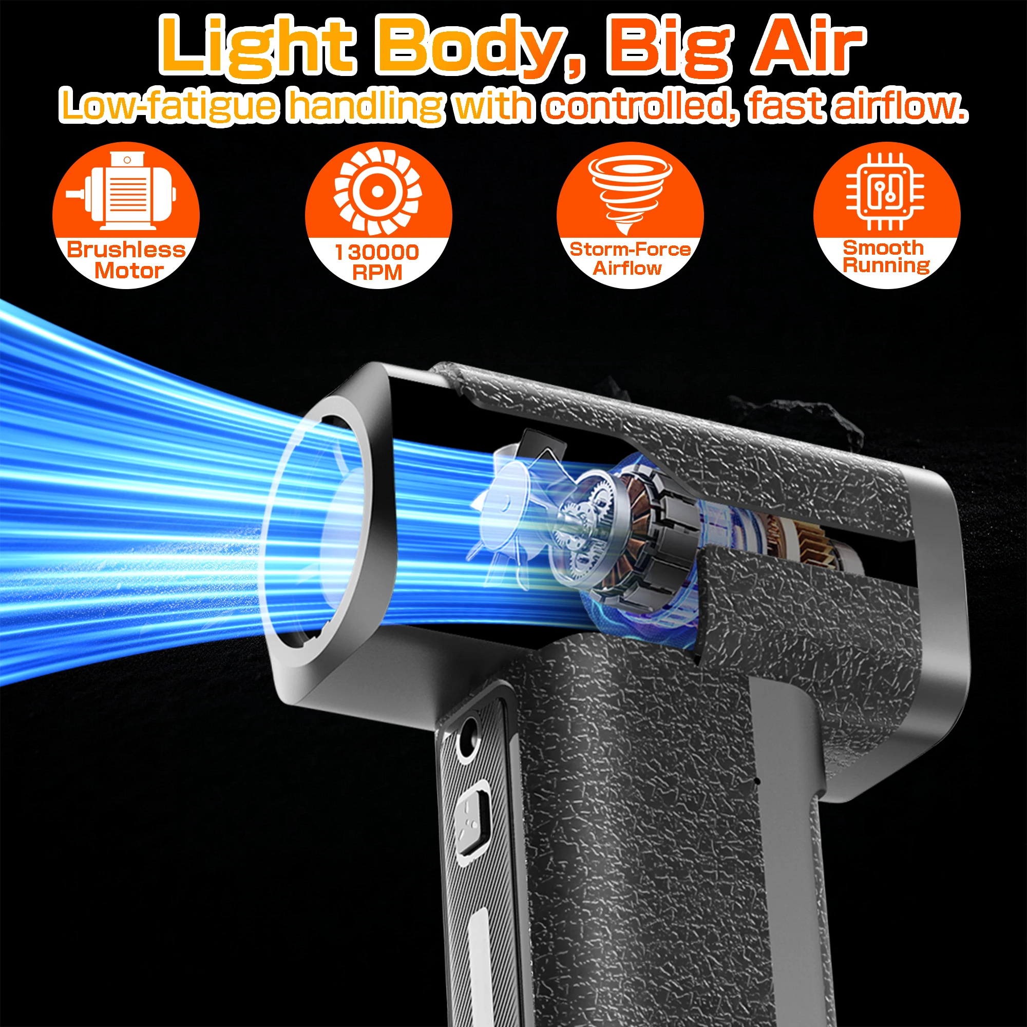 - Easy to use operation:Knob stepless speed regulationThe user-friendly design of portable turbo fans ensures easy functionality. In addition, the charging board also has safe and reliable charging protection and overheating protection functions. The internal brushless motor can achieve high speeds of up to 130000RPM (revolutions per minute).