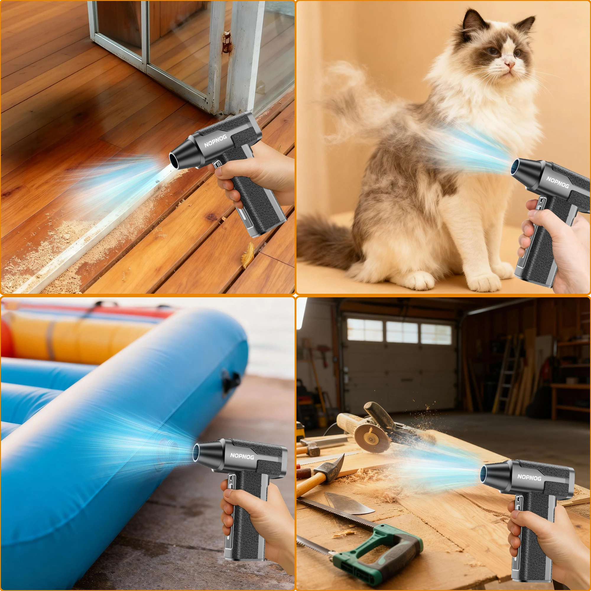 - Wide Usage:Air cushion blowing and suction, computer equipment cleaning, industrial dust blowing, charcoal burning to support combustion, car blowing and snow blowing, film studio shooting and wind making, drying pets, and many other uses.Â