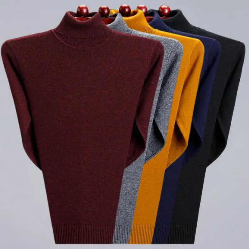 Men's High Neck Knitwear Casual Comfortable Warm Pullover Base Layer Fashion Trend Pure Color Winter Seasonal Top