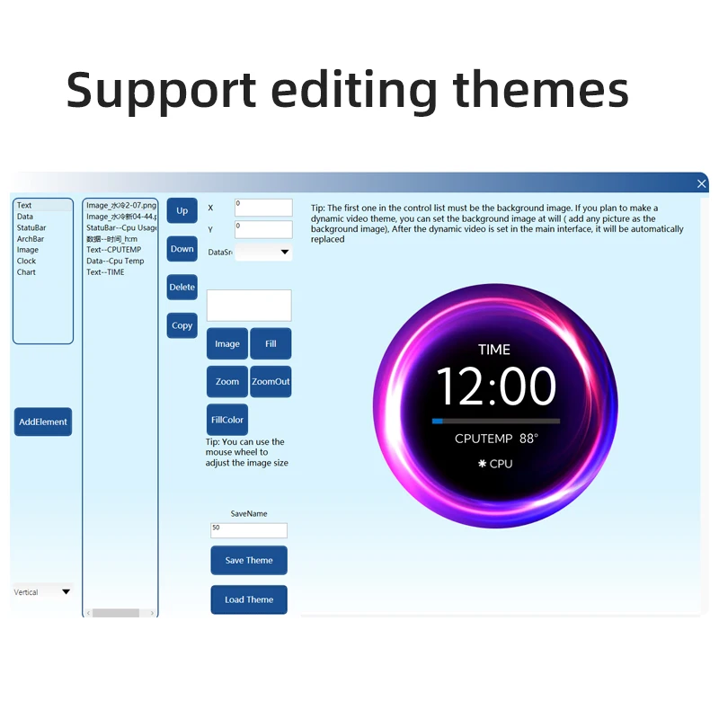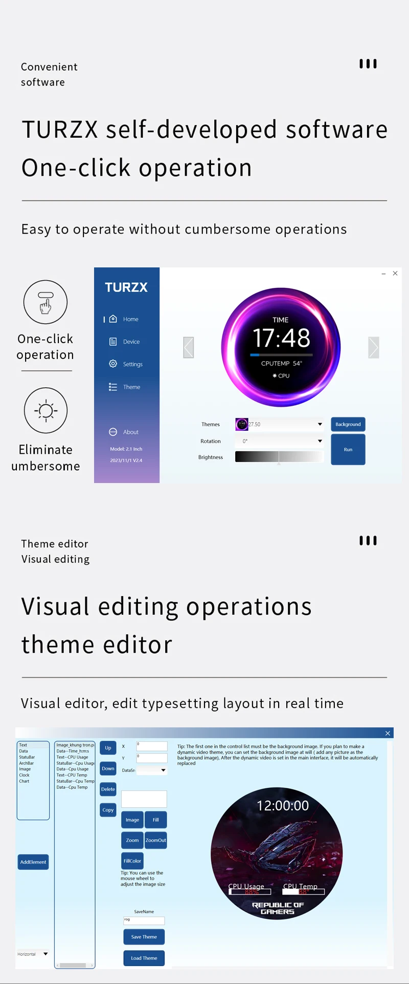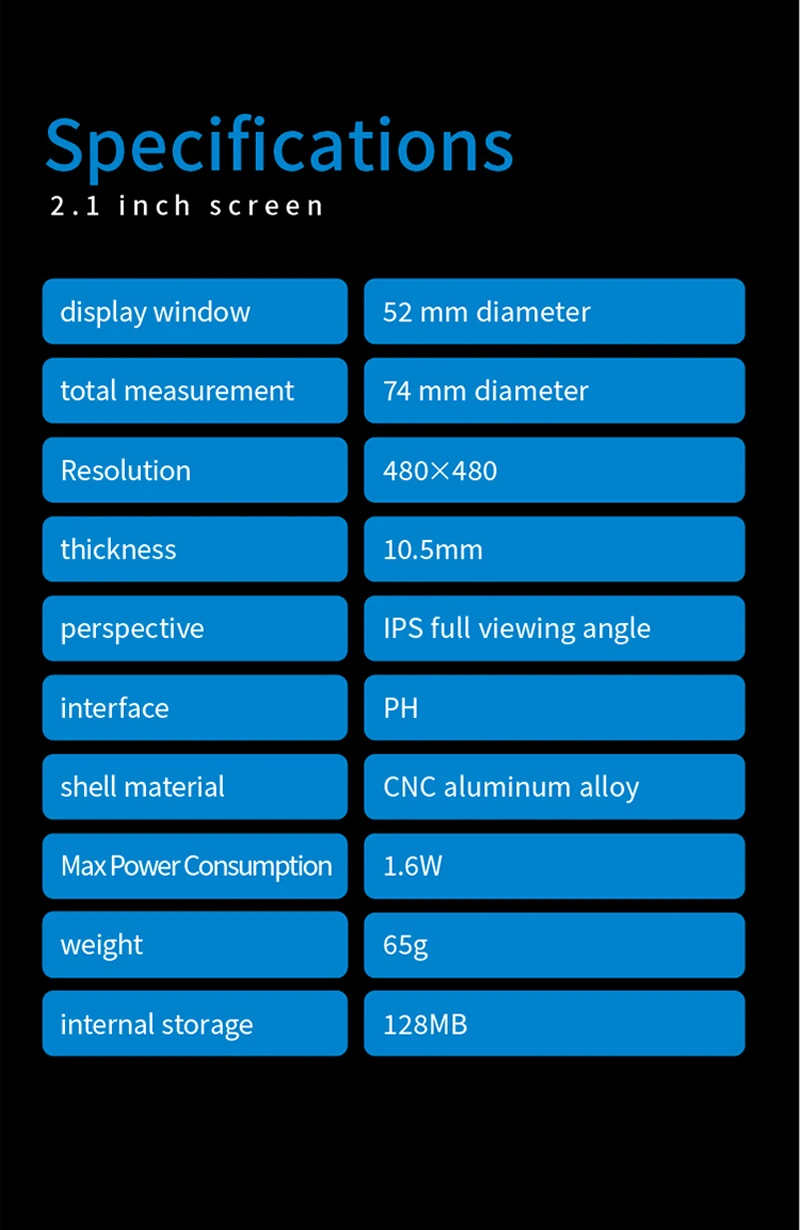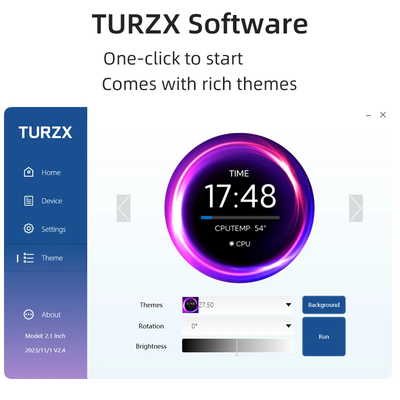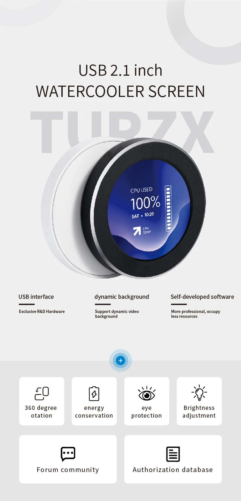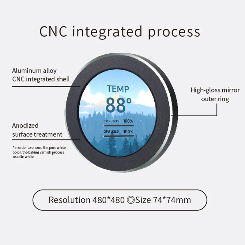 TURZX 2.1 Inch IPS Secondary Screen USB Type-C 480×480 Round Display for Water Cooler PC CPU GPU RAM HDD Monitor with CNC Case