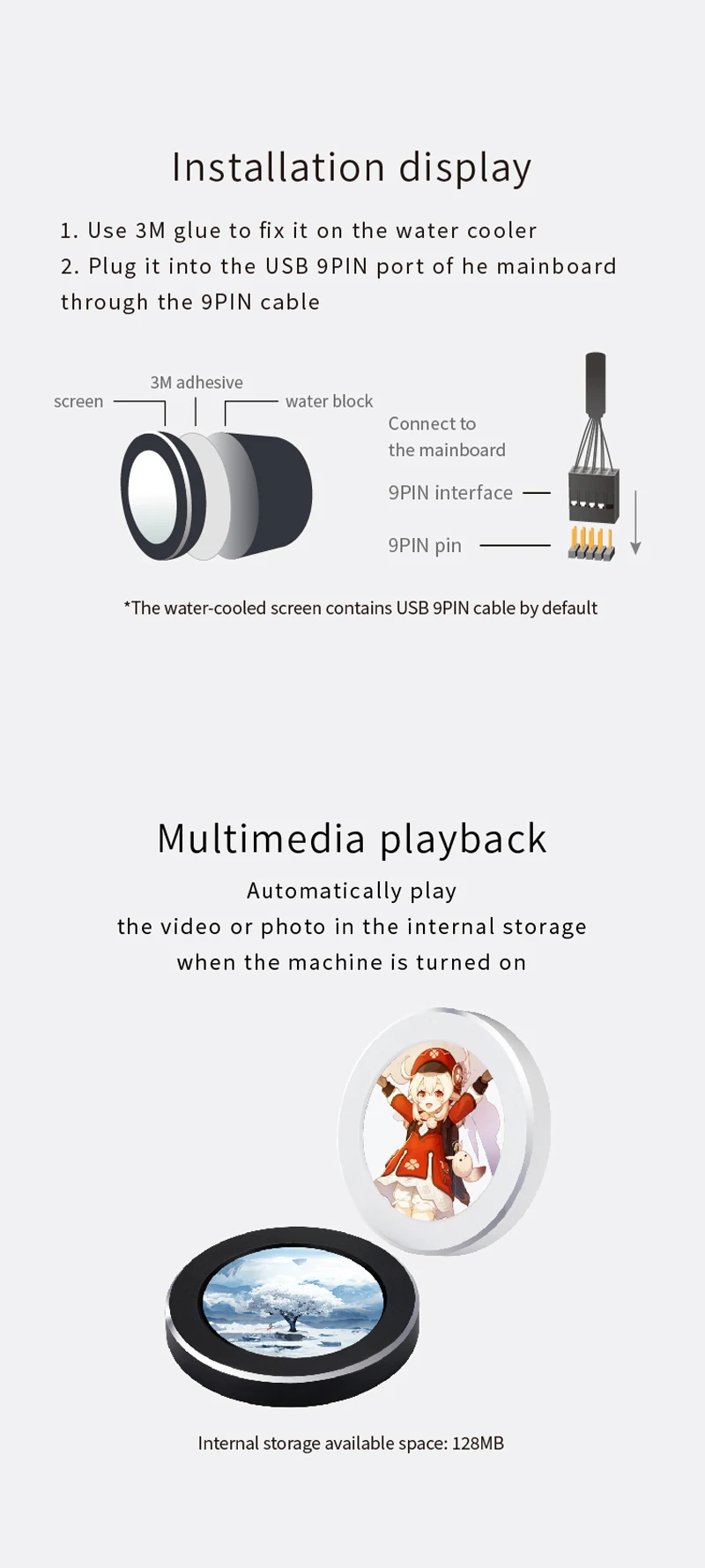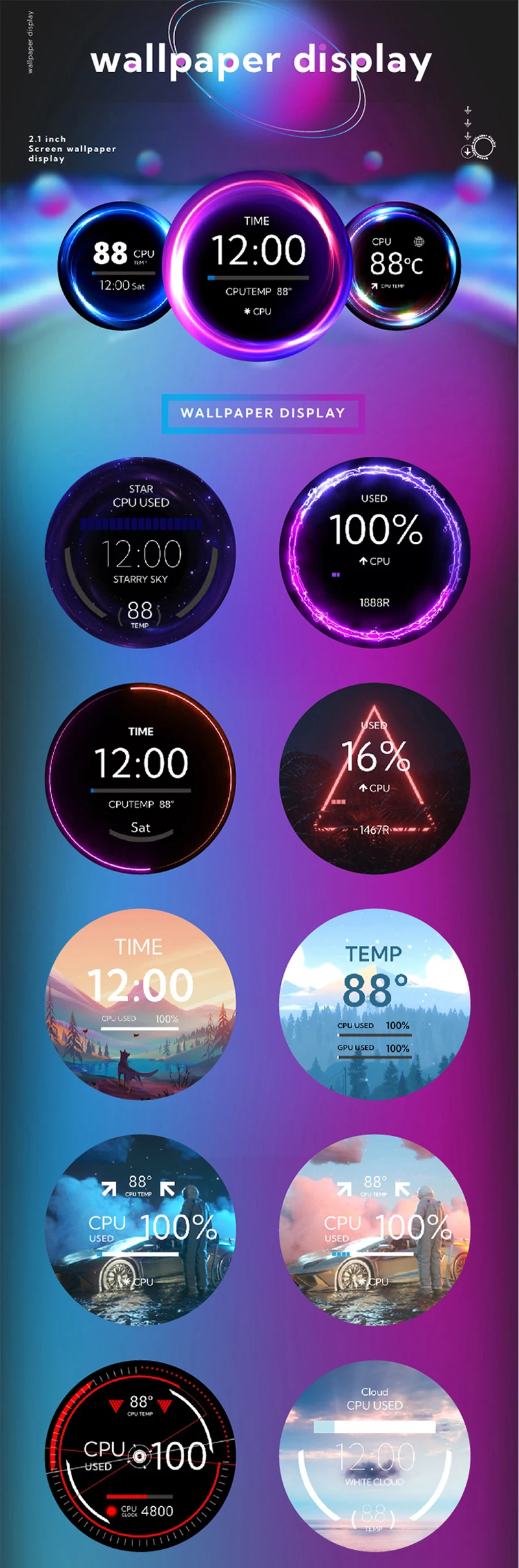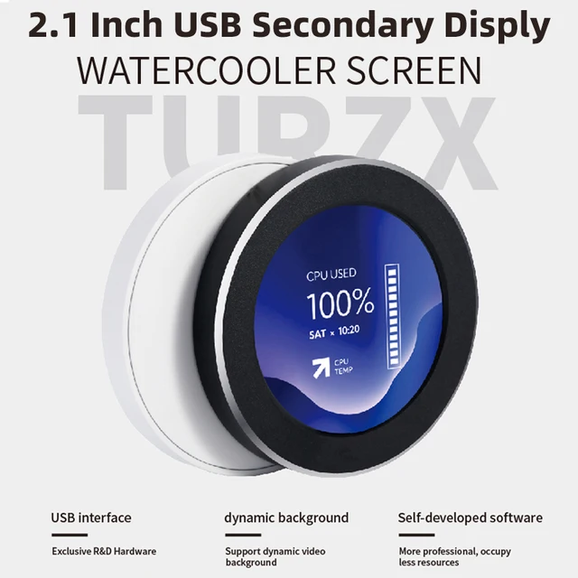 -50%TURZX 2.1 Inch IPS Secondary Screen USB Type-C 480×480 Round Display for Water Cooler PC CPU GPU RAM HDD Monitor with CNC Case