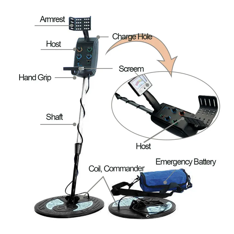 MD5008 Metal Detector Underground Detection Tools/ Equipment With Two Coils Treasure Hunter Gold Searching Metal