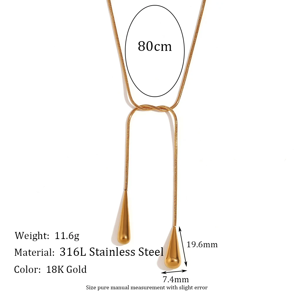 Two Water Drop Snake Chains Necklace Tarnish Free Silver Color Stainless Steel Accessories 18K Gold Plated Women's Neck Chain