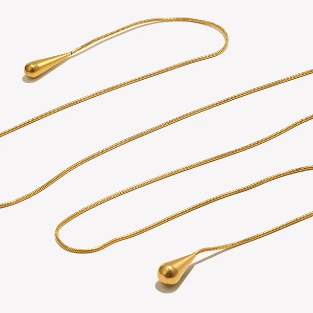 Two Water Drop Snake Chains Necklace Tarnish Free Silver Color Stainless Steel Accessories 18K Gold Plated Women's Neck Chain