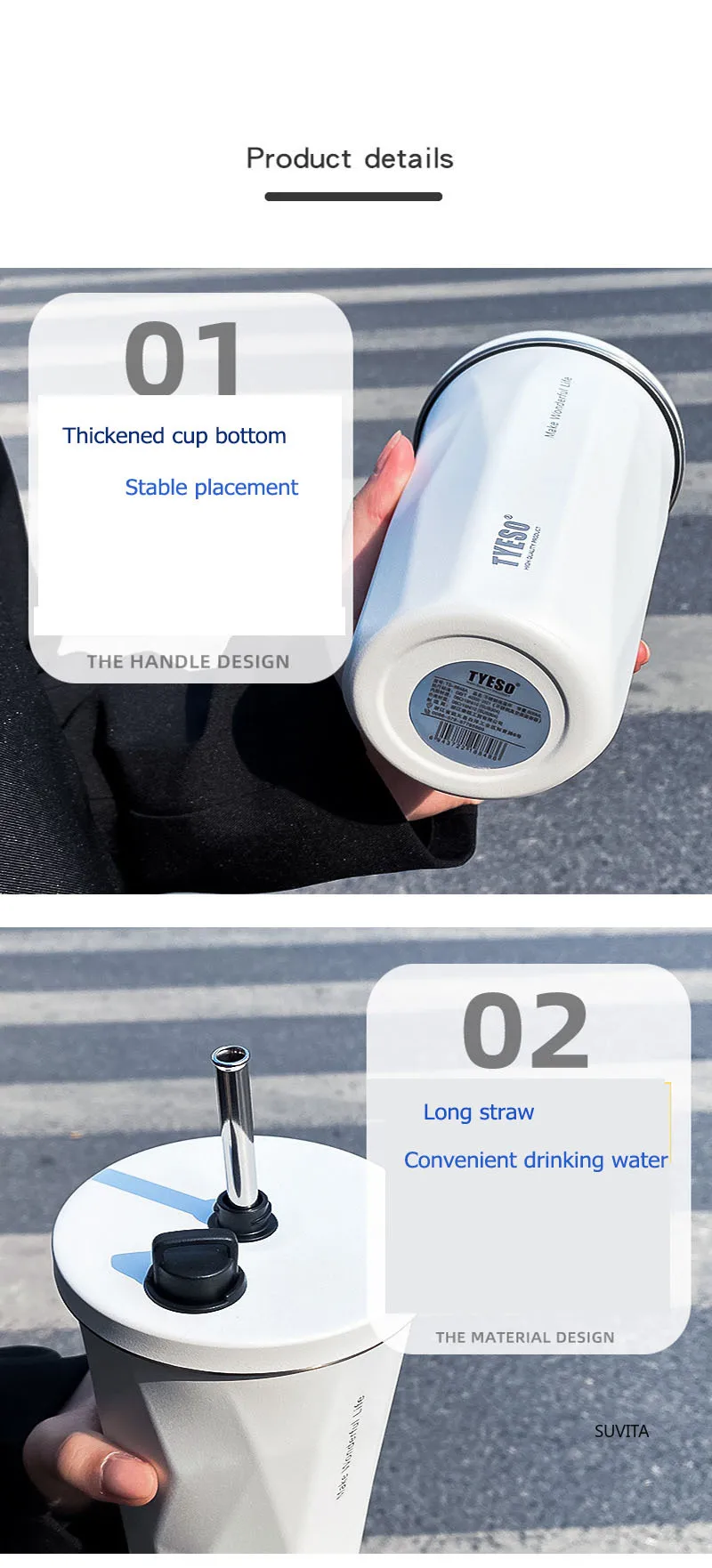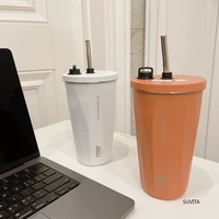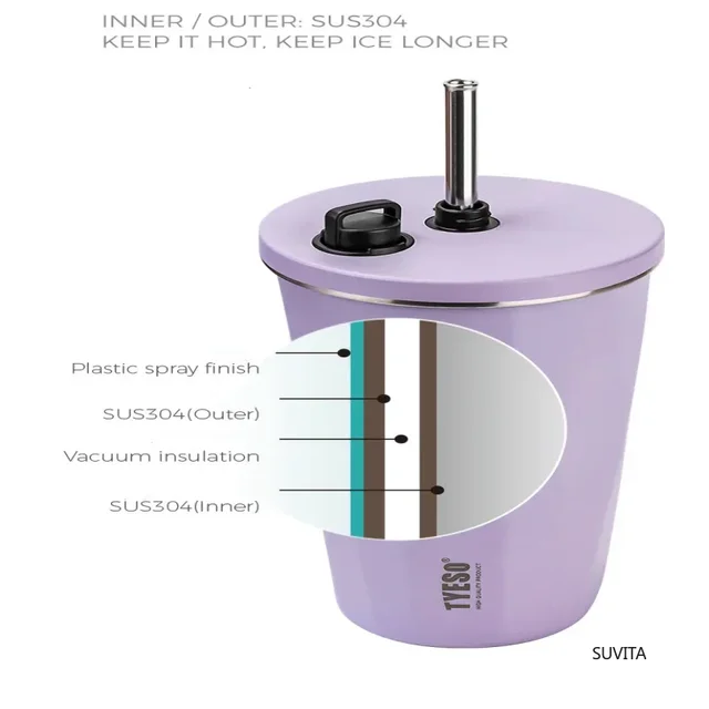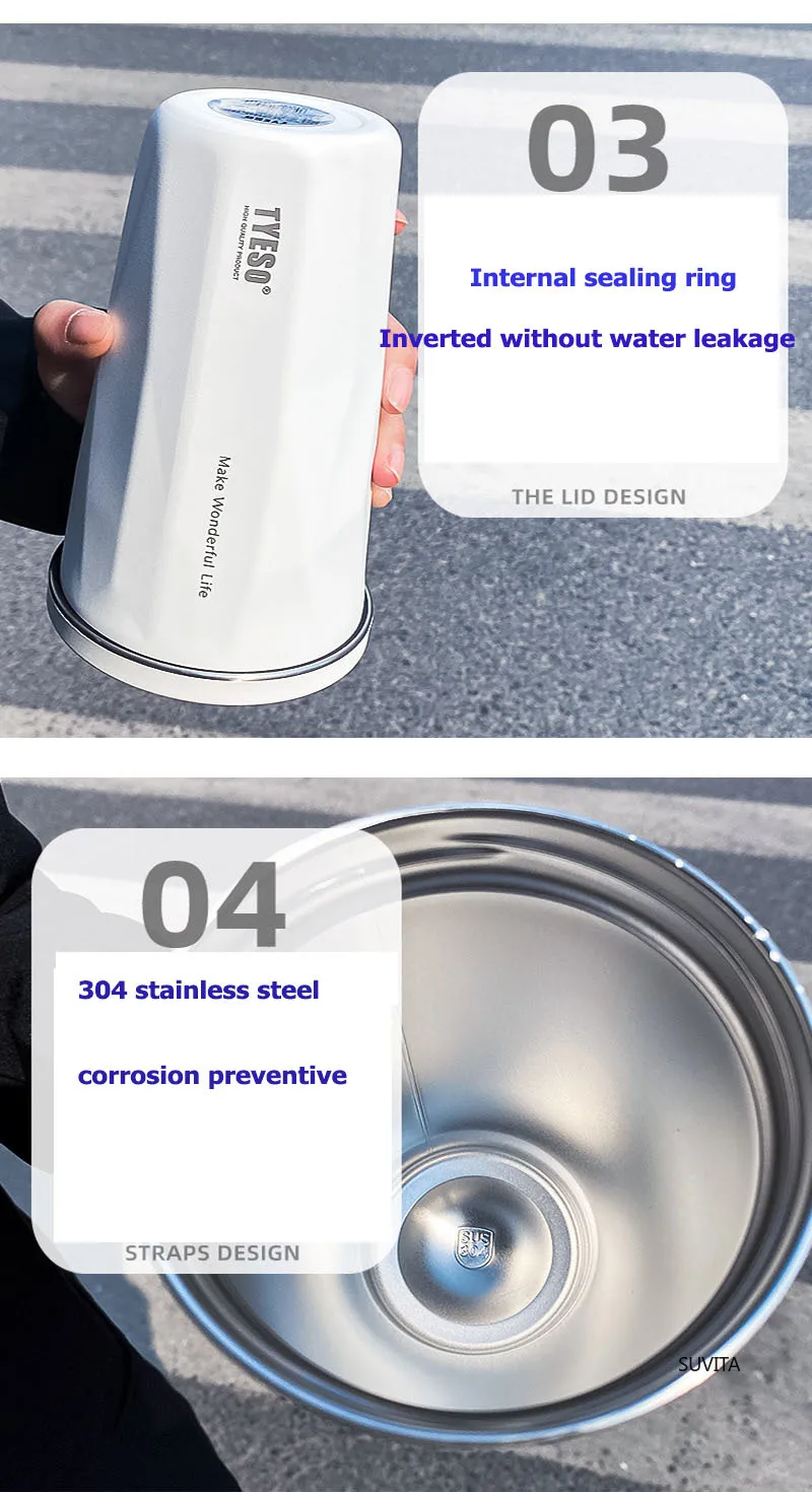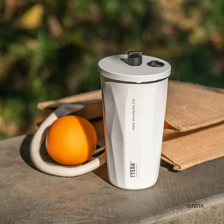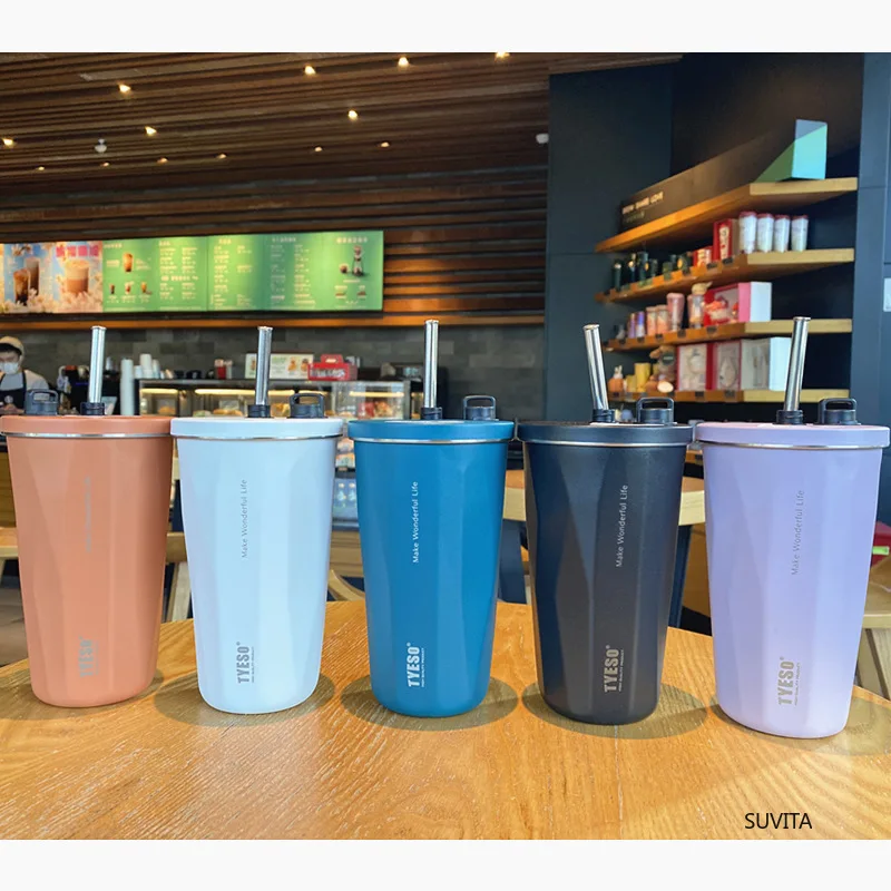 Tyeso 600ml New Water Cup Vacuum Stainless Steel Insulation Keep Cold Coffee Cup Large Capacity Car Straw Cup Water Bottle Mugs