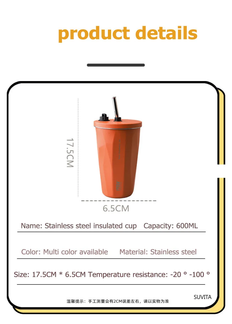 Cup size: 6.5 * 18.6cm (including straw cap) Color box size: 10.5 * 10.5 * 19.5cm