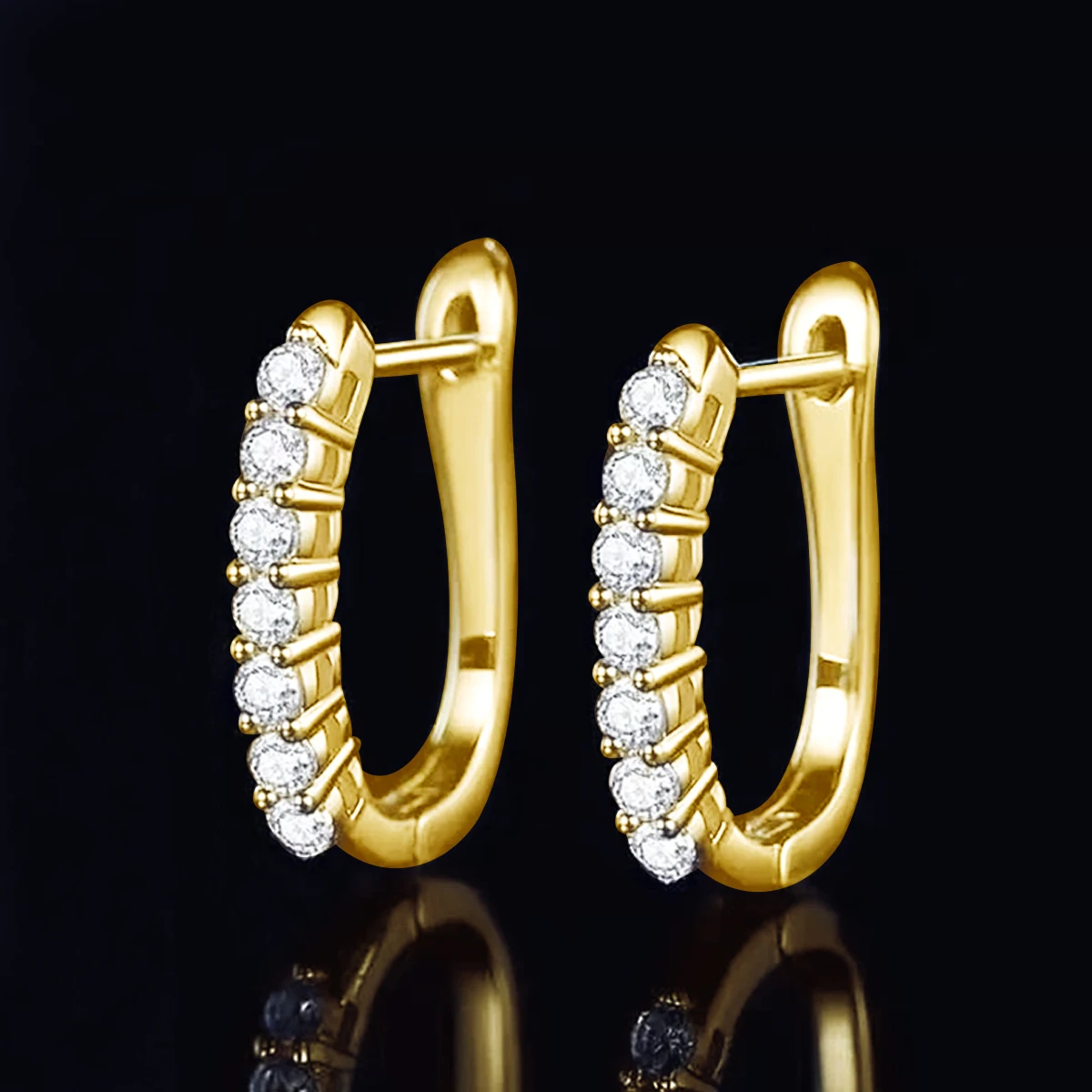 U Shape 14K Gold Hoop Earings For Women AU585 K Gold Clip Ear Stud Fine Jewelry Wedding Valentine’s Day Gift