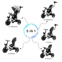 Ubravoo Baby Stroller Tricycle Ride Bike , Unisex Baby Tricycle,5-in-1 Baby Push Bike Steer Stroller,Learning Toddler Bike/Detachable Guardrail,Adjustable Canopy,Safety Harness,Folding Pedal,Storage Basket,Brake,Shock Absorption Design. Specification: Color:White/Black,A stroller Cup Holder as a gift. Material:Carbon Steel+Knitted Fabric+PP Plastic. Overall Dimension:37.4”x35.43”x23.62”/95*90*60CM. Suitable Age for 1 – 5 years old. Weight Capacity: 64.14 lbs/30kg. Package includes:1 x Tricycle 1 x Instruction.