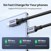 UGREEN USB C to USB C Cable build in E-marker intelligent chip,which ensures safe charging up to 100W (20V 5A) power output for your laptops/mobile phones/tablets at full speed.