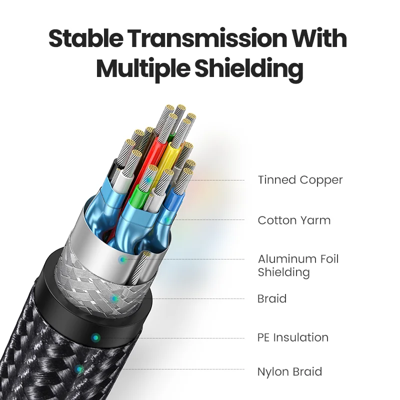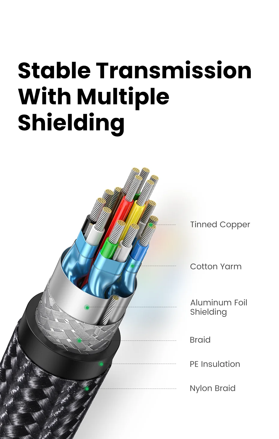UGREEN High Speed HDMI 2.0 TV Cable takes your productivity and entertainment experience to a new level. You can enjoy sharp, crisp images on a larger 4K UHD TV/4K HDTV that has 4x more pixels than FHD TV. Capture every detail and see it clearly.