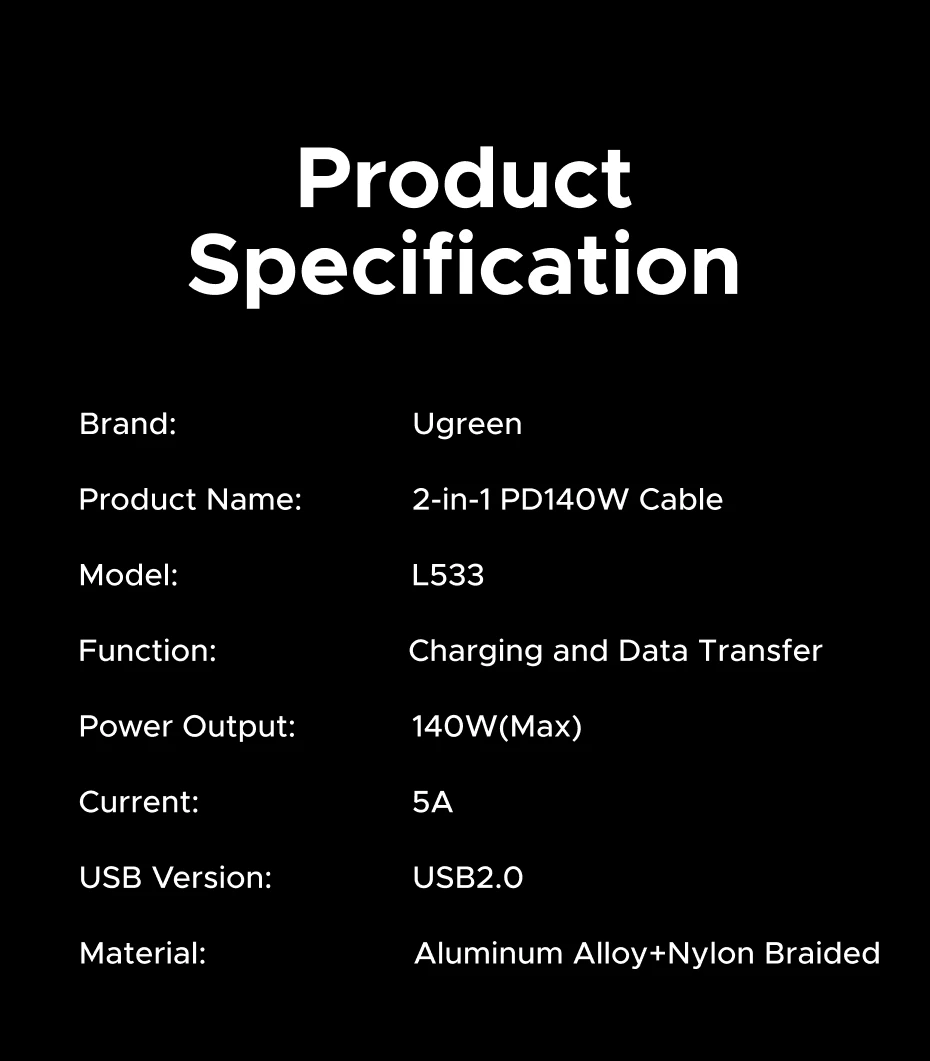 Be the first to review “UGREEN USB C Cable 2-in-1 140W PD3.1 Fast Charging 1 to 2 Type C Braided Nylon Cord for iPhone16 iPad”