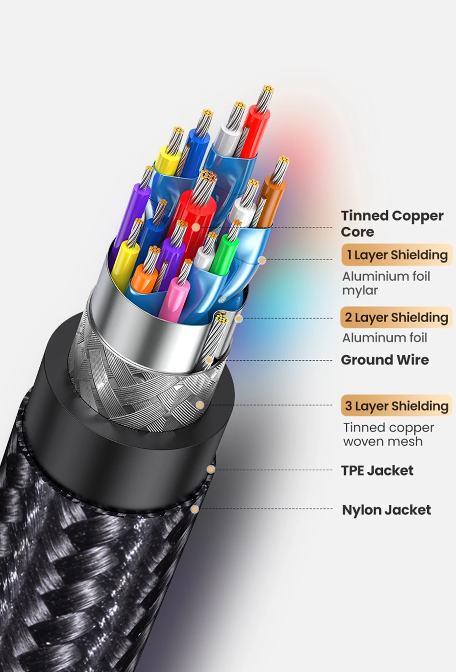 3 layers shielding protection offer powerful signal transmission