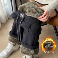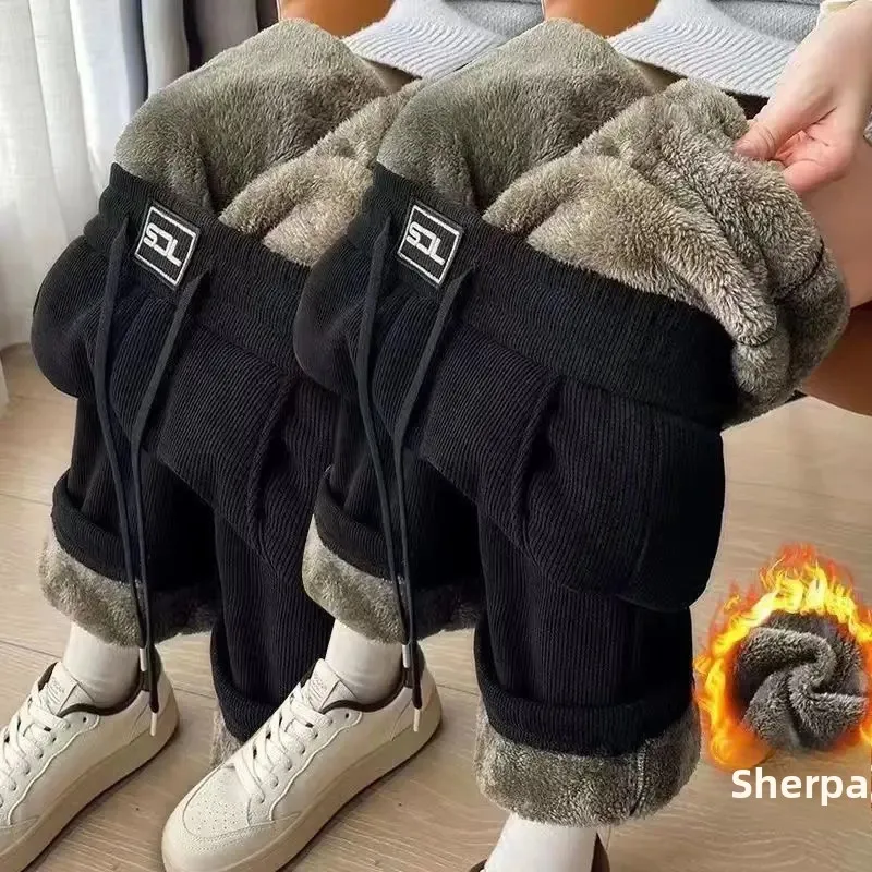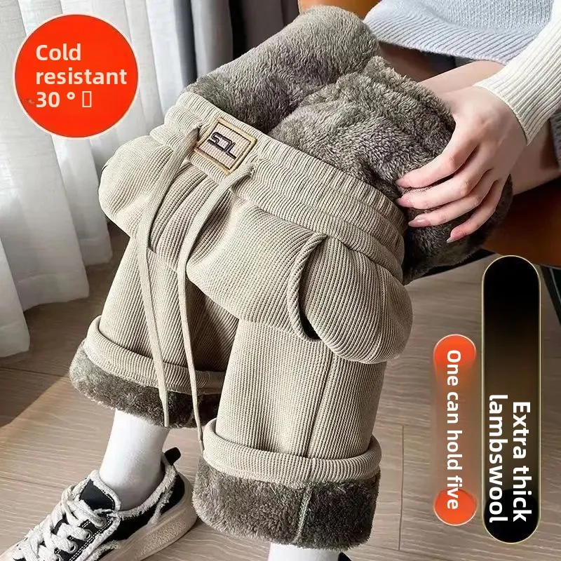 Ultra-Thick Fleece-Lined Wide Leg Pants Women's Casual Straight Cut High-Rise Autumn Winter New Style Northeast INS Loose Fit