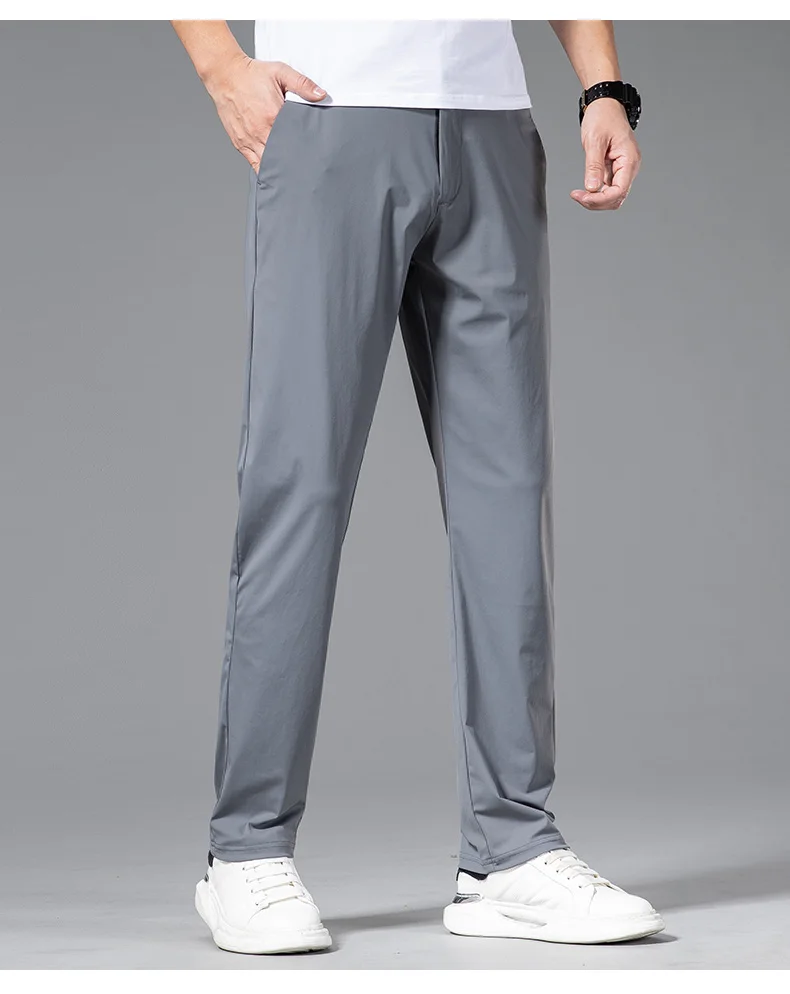Ultra-thin Ice Silk Quick-dry Casual Pants Men Straight High Elastic Draped Business Korean Spring Summer
