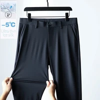 Ultra-thin Ice Silk Quick-dry Casual Pants Men Straight High Elastic Draped Business Korean Spring Summer