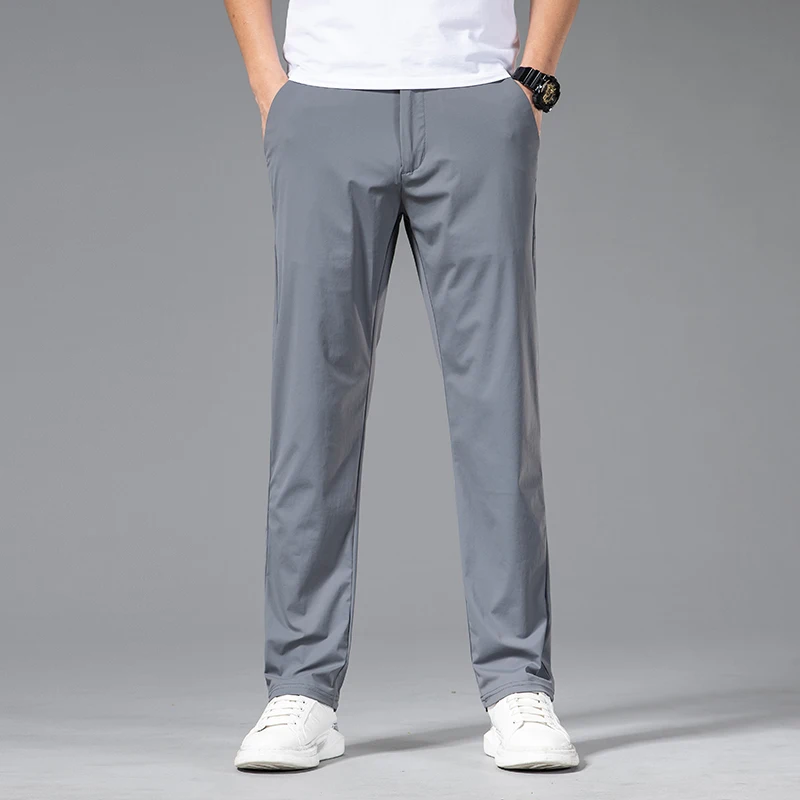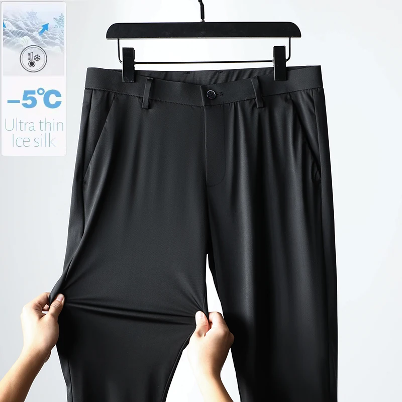 Ultra-thin Ice Silk Quick-dry Casual Pants Men Straight High Elastic Draped Business Korean Spring Summer Trousers Brand Clothes