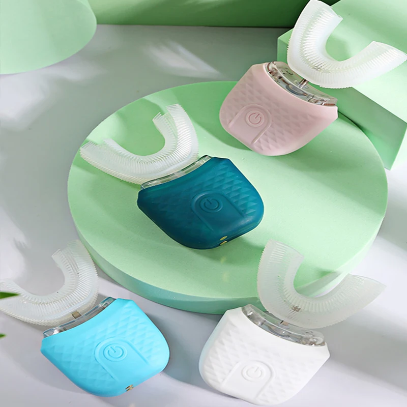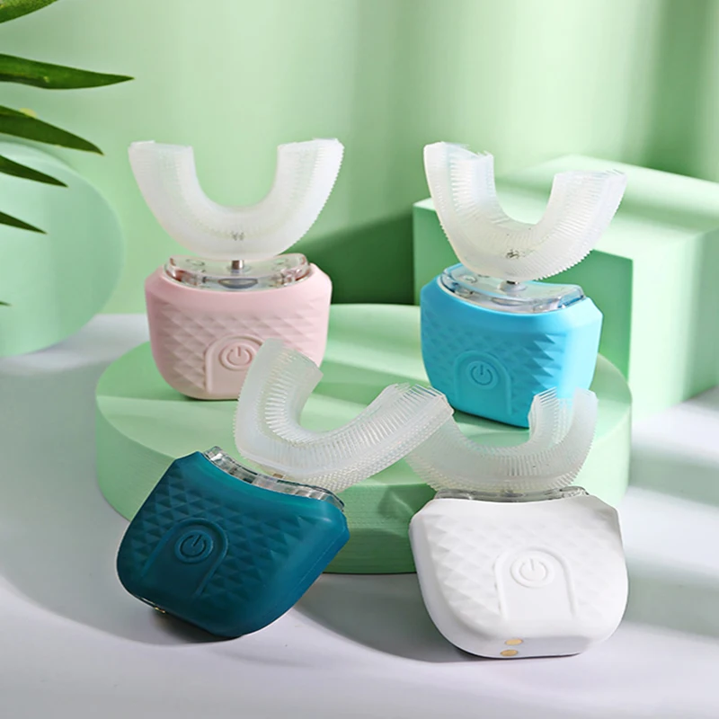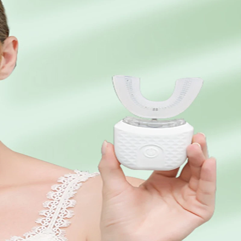 Portable U-shaped electric toothbrush, ultrasonic 360-degree cleaning, silicone whitening automatic toothbrush, oral tool