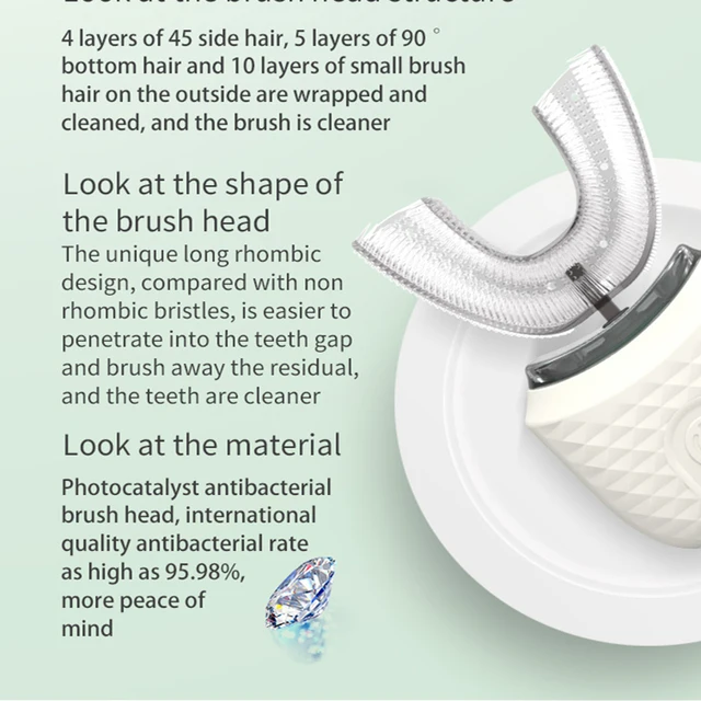 Portable U-shaped electric toothbrush, ultrasonic 360-degree cleaning, silicone whitening automatic toothbrush, oral tool