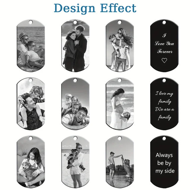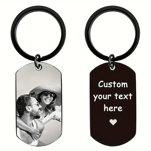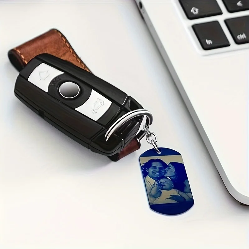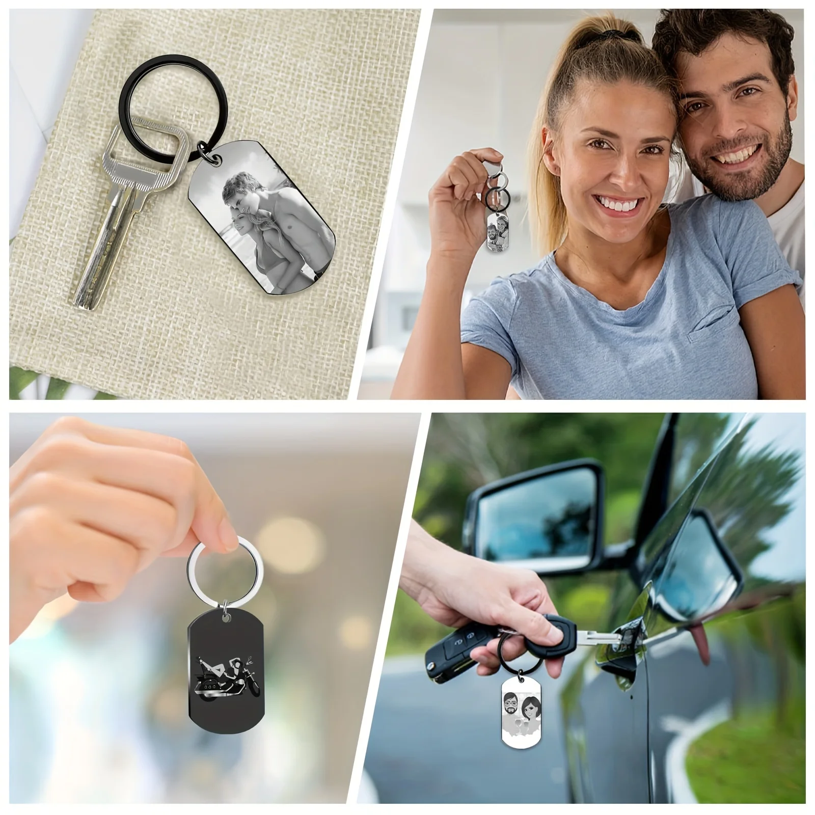 Personalized Photo Keychain Stainless Steel Laser Engraving Customized Name Date Car Keyrings for Women Men DIY Gift