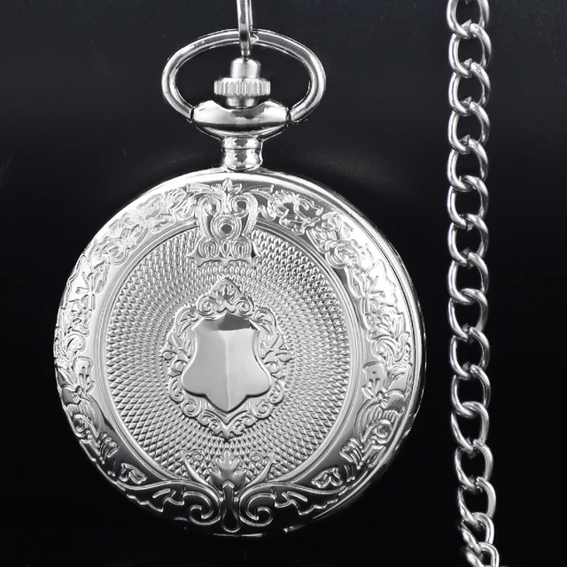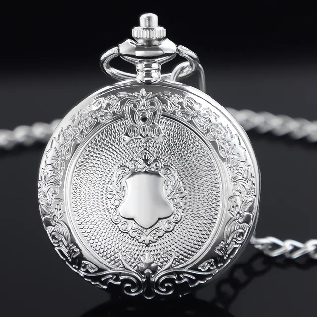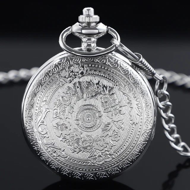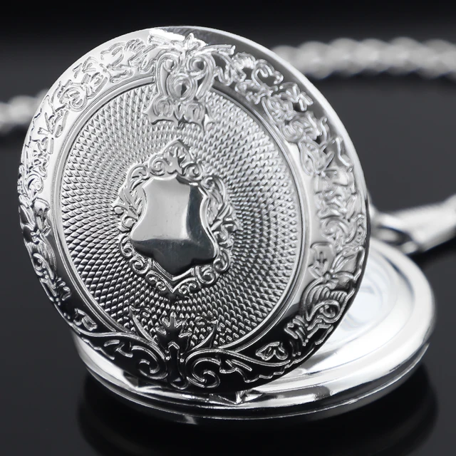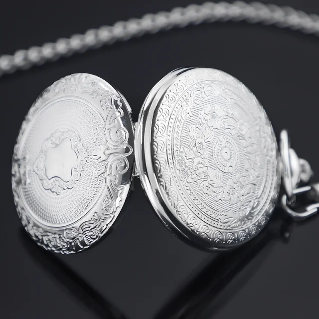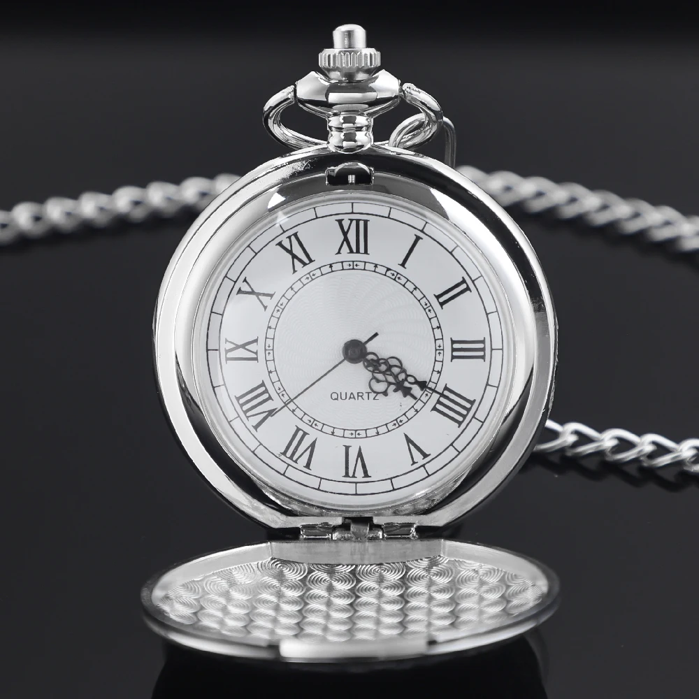 Unique Silver Quartz Pocket Watch Pendant Clock Chain Exquisite CharmPendant for Men Women with Chain