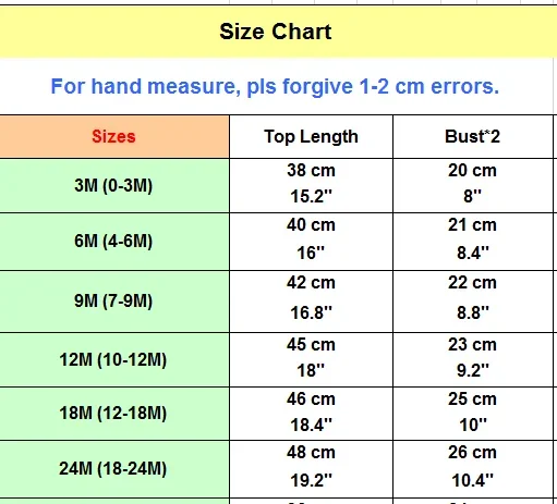 Size: 3M(0-3M), 6M(4-6M), 9M(7-9M), 12M(10-12M), 18M(12-18M), 24M(18-24M)  Suit for 0-2 years baby (Only for reference)