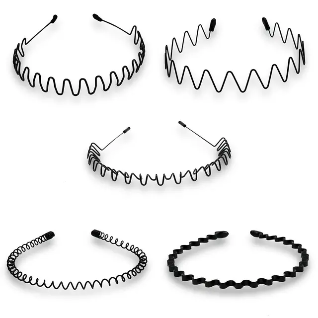 Unisex Black Elastic Non Slip Simple Metal Headbands For Men Women Wavy Hairband Spring Hair Hoop Fashion Hair Accessories