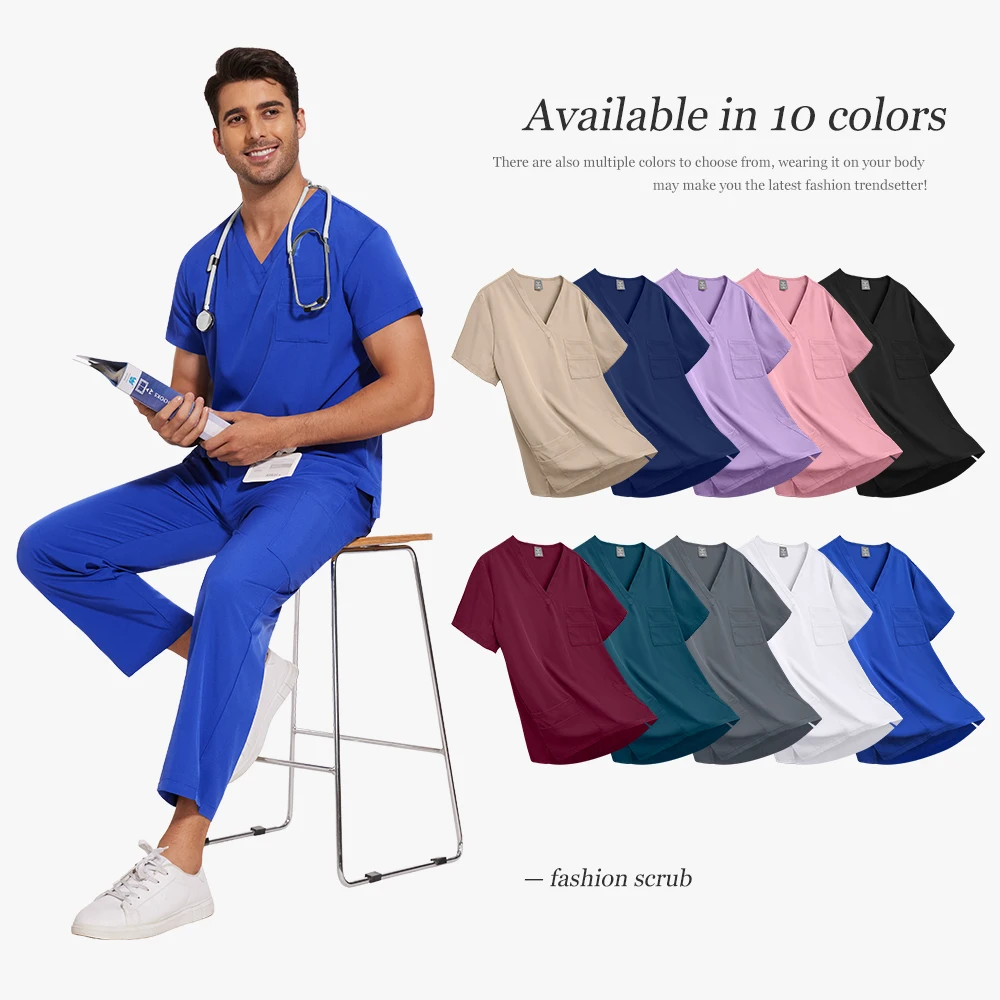 Unisex Breathable Medical Nursing Scrub Elastic Anti-wrinkle Surgical Uniforms Women Dentist Clinical