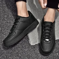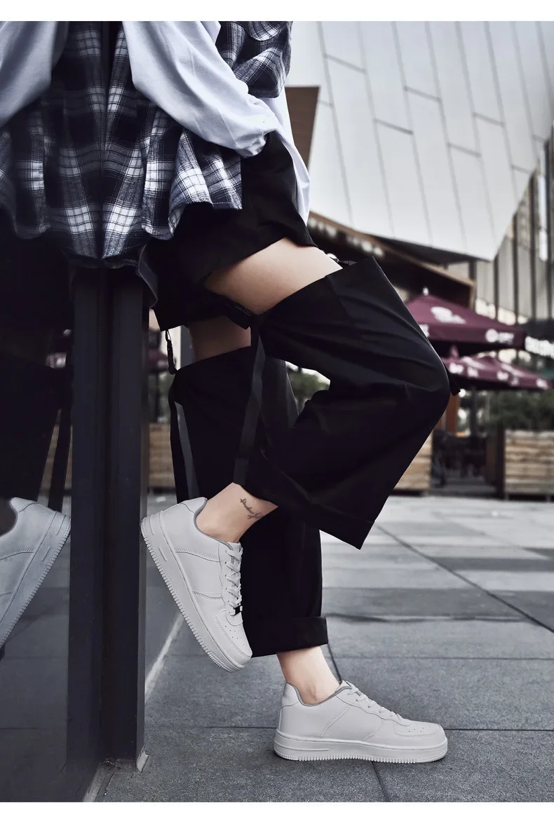 Unisex Hookless White Sneakers Flat Bottom Breathable Leather Low Top Cement Ground Suitable Casual Couple
