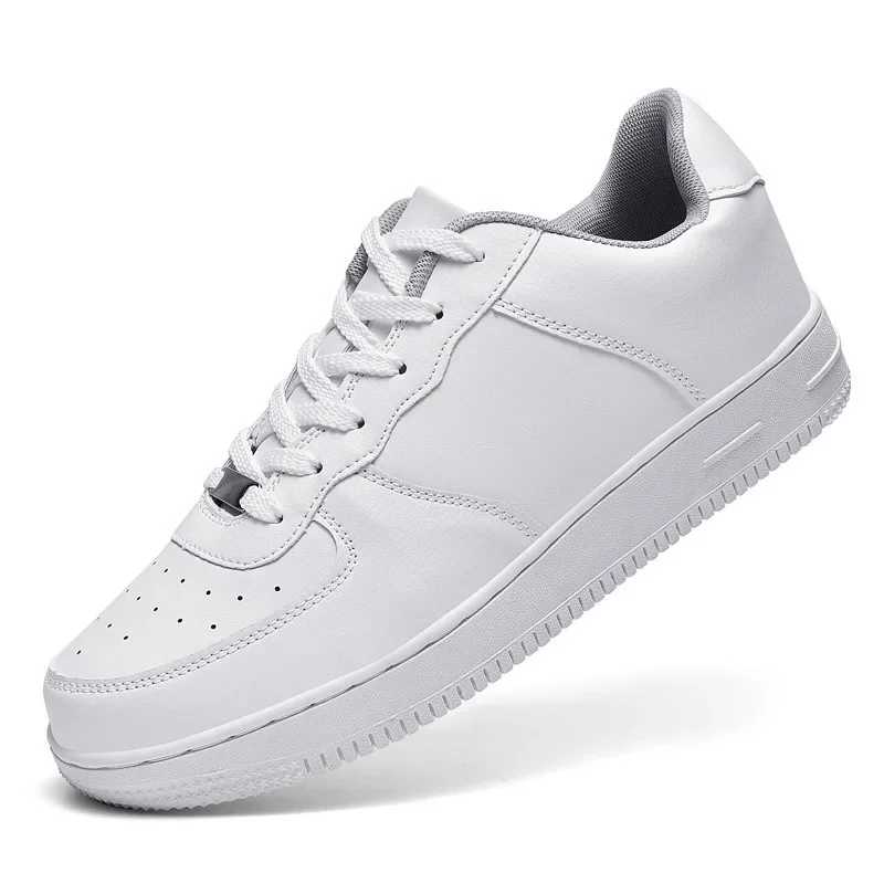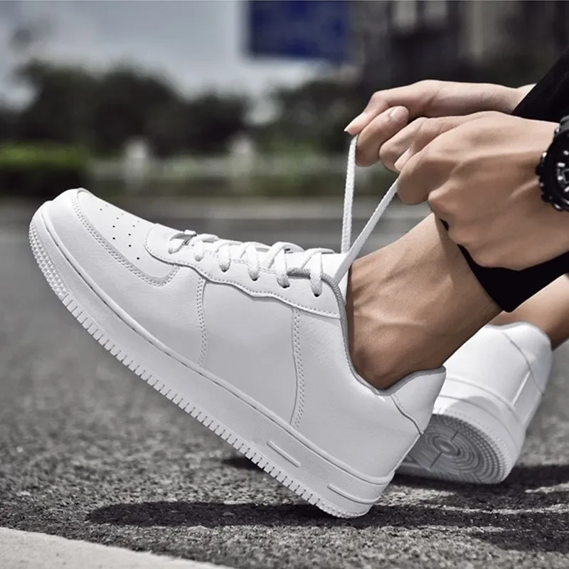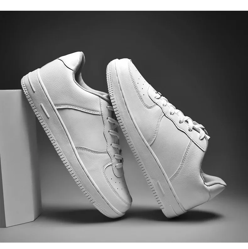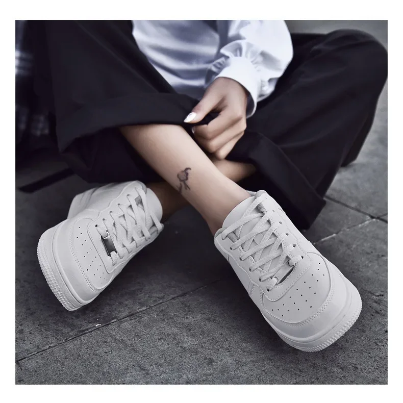 Be the first to review “Unisex Hookless White Sneakers Flat Bottom Breathable Leather Low Top Cement Ground Suitable Casual Couple”