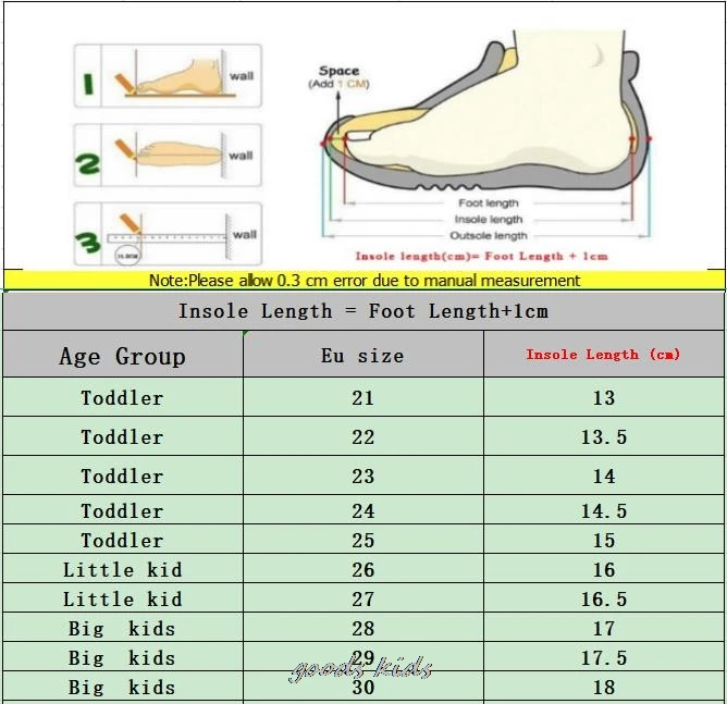 21 insole 13 cm22 insole 13.5 cm23 insole 14 cm24 insole 14.5 cm25 insole 15 cm26 insole 16 cm27 insole 16.5 cm28 insole 17 cm29 insole 17.5 cm30 insole 18 cm