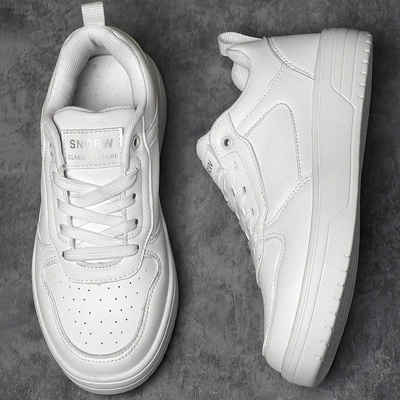 Oulylan Men Leather Waterproof Casual Shoes Fashion Non Slip Board Shoes Thick Soled Lace Up Sneakers for Men 39 To 44