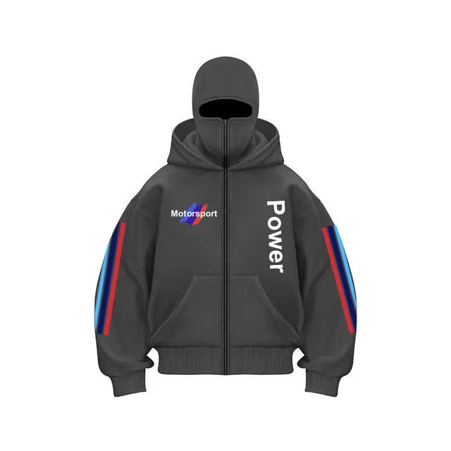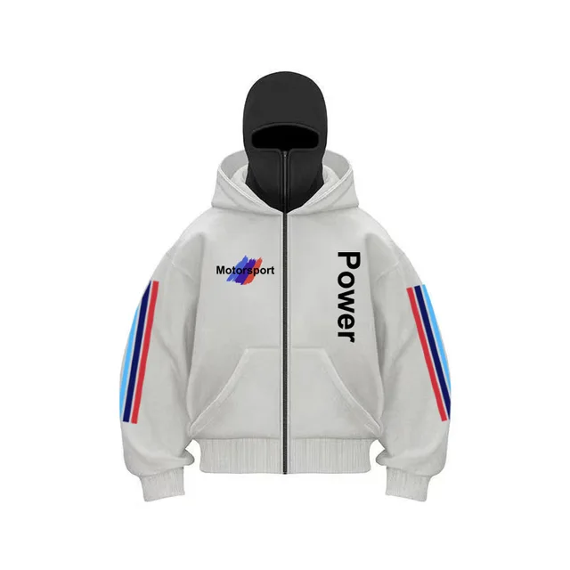 This hoodie features a unique street style design with double caps and distinctive print, making it a standout piece for fashion-forward individuals.