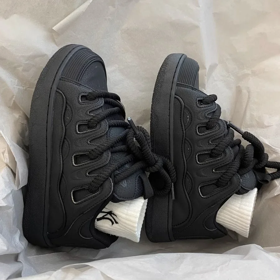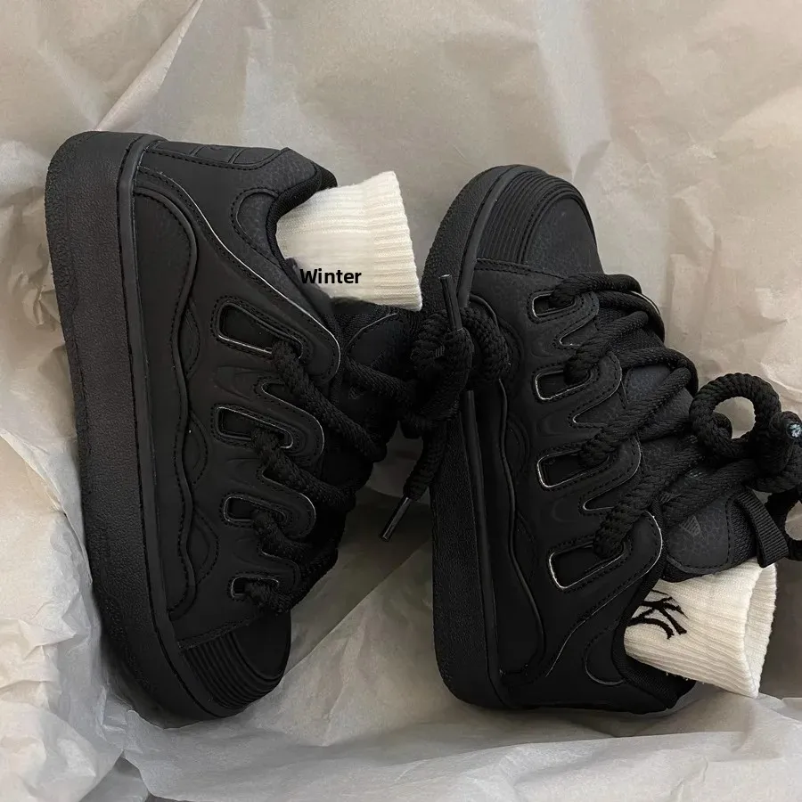 Unisex Trendy Thick Bottomed Black Board Shoes for Men And Women Couple Bread Shoes Fall New Arrival