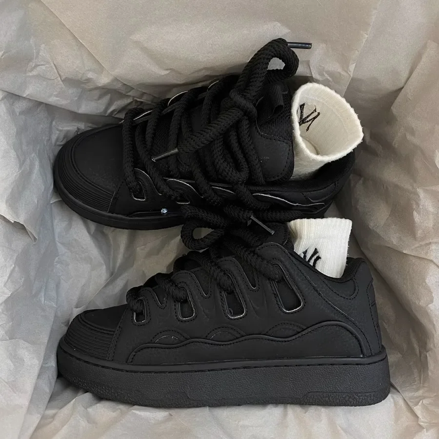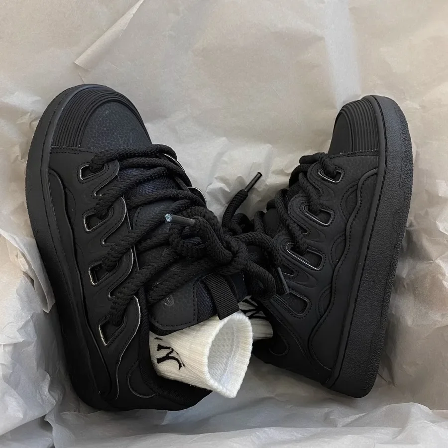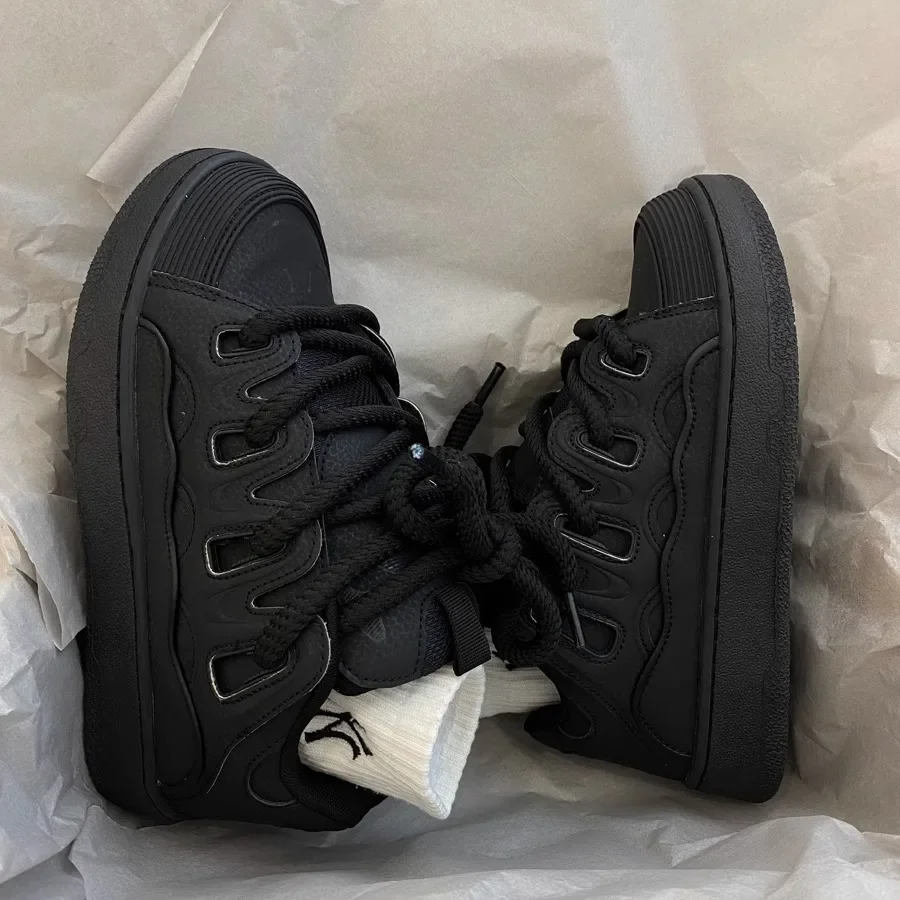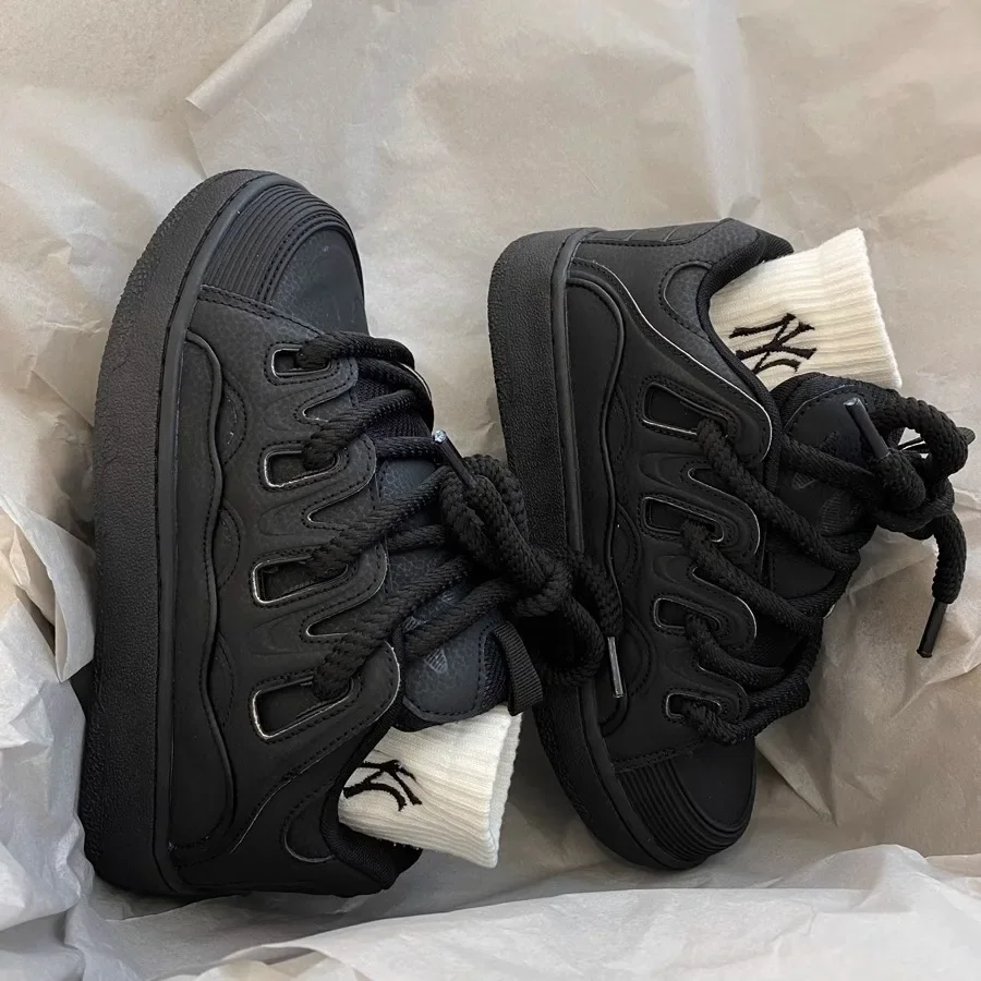Unisex Trendy Thick Bottomed Black Board Shoes for Men And Women Couple Bread Shoes Fall New Arrival Versatile Ins Style