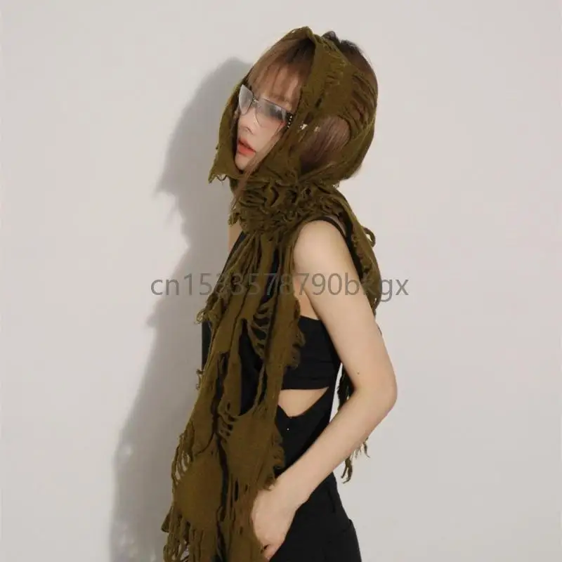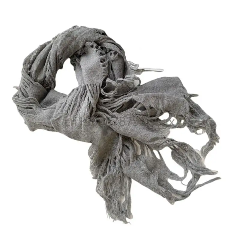 Unisex Wool Scarf Soft Ragged Neck Scarf Neck Cover for Winter Autumn Popular 2000s Distressed Scarf for Casual Shopping J78E