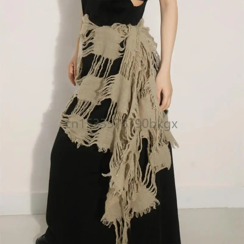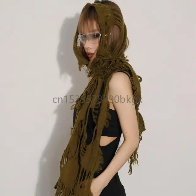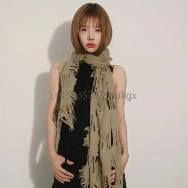 Unisex Wool Scarf Soft Ragged Neck Scarf Neck Cover for Winter Autumn Popular 2000s Distressed Scarf