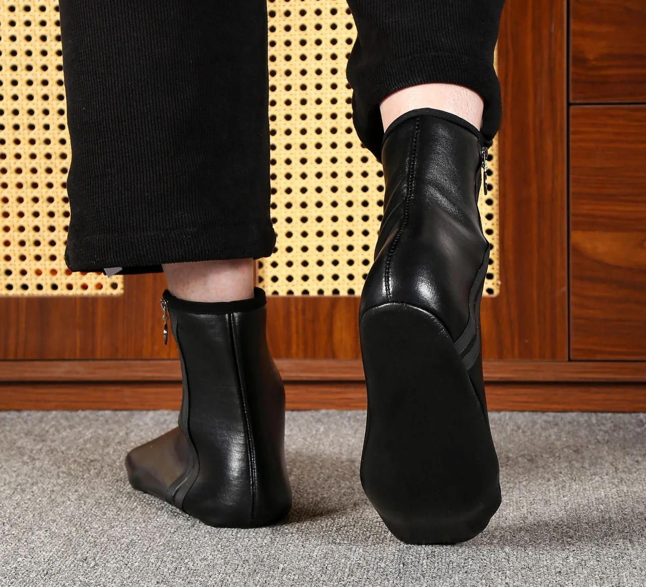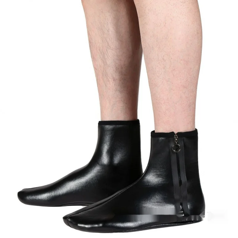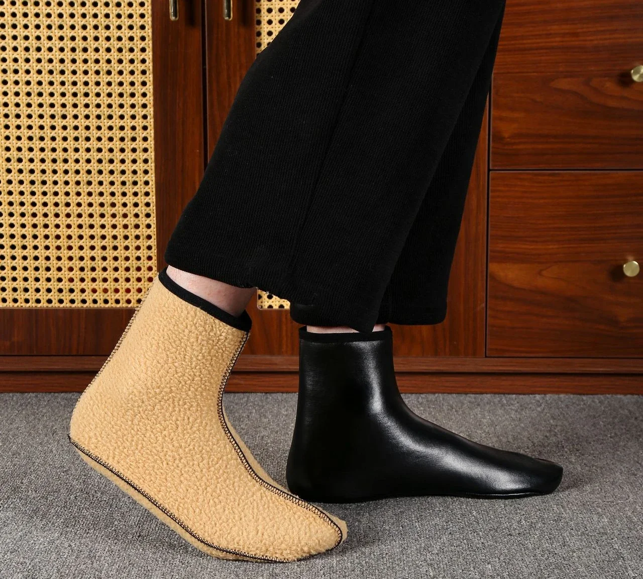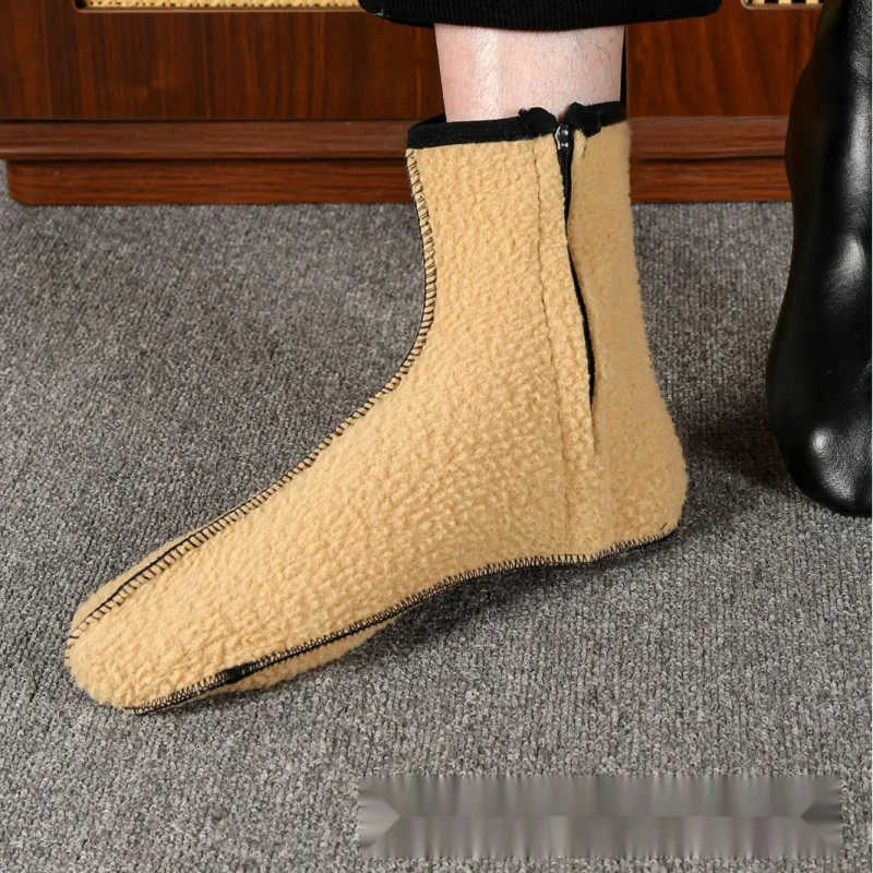 1 Pair Zipper Black Winter Stockings Adult Men and Women Middle High Tube Fleece-lined Thick Keep Warm Leather Floor Room Socks